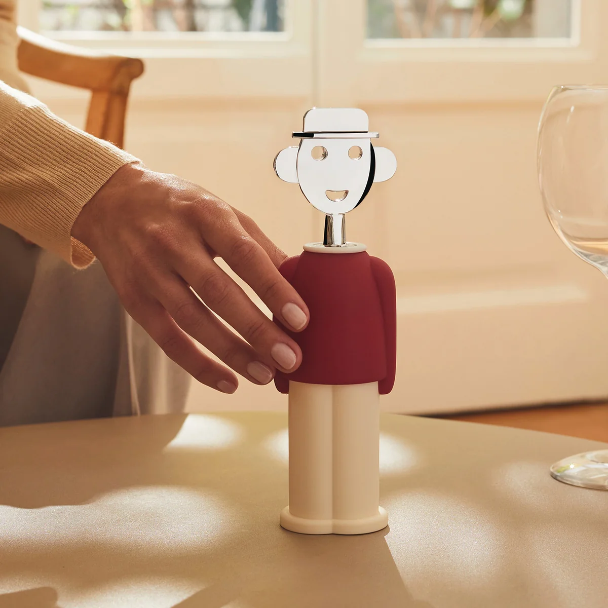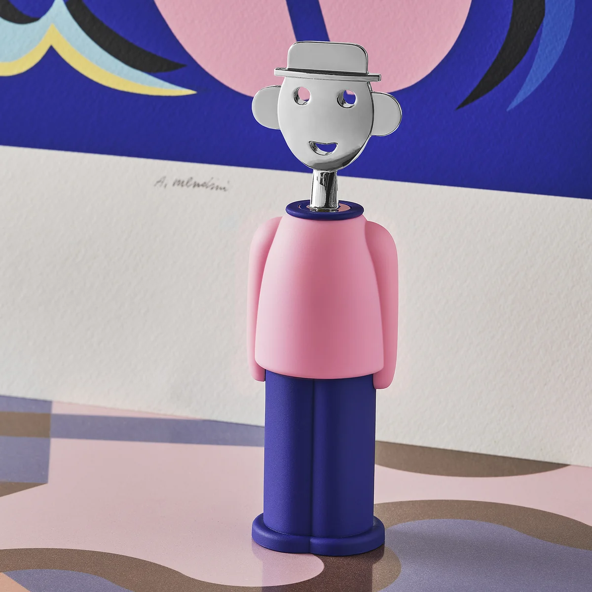 C'est peut-être par jalousie de l'immense succès de "Anna G." que Alessandro M endini a décidé de nous faire plaisir avec la figurine " Alessandro M .". Comme il est sans aucun doute facile de le reconnaître, ce tire-bouchon est l'autoportrait du designer. Même si cela semble si facile, en réalité, donner vie à un nouveau personnage qui puisse s'intégrer à la fois dans les événements autobiographiques du designer et dans le décor du design international était tout sauf simple.