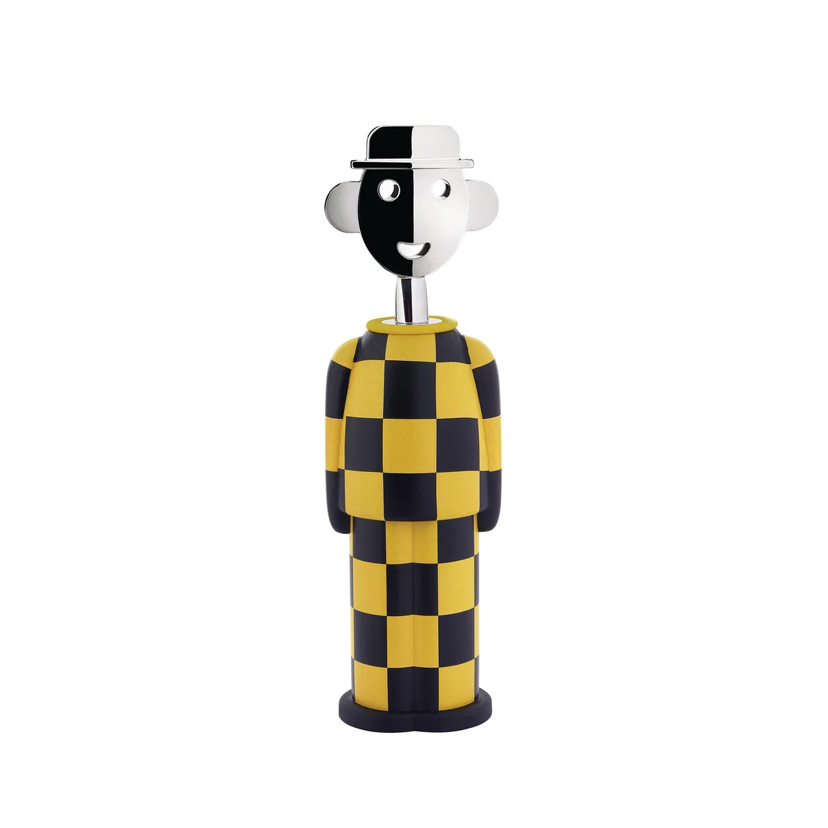 C'est peut-être par jalousie de l'immense succès de "Anna G." que Alessandro M endini a décidé de nous faire plaisir avec la figurine " Alessandro M .". Comme il est sans aucun doute facile de le reconnaître, ce tire-bouchon est l'autoportrait du designer. Même si cela semble si facile, en réalité, donner vie à un nouveau personnage qui puisse s'intégrer à la fois dans les événements autobiographiques du designer et dans le décor du design international était tout sauf simple.