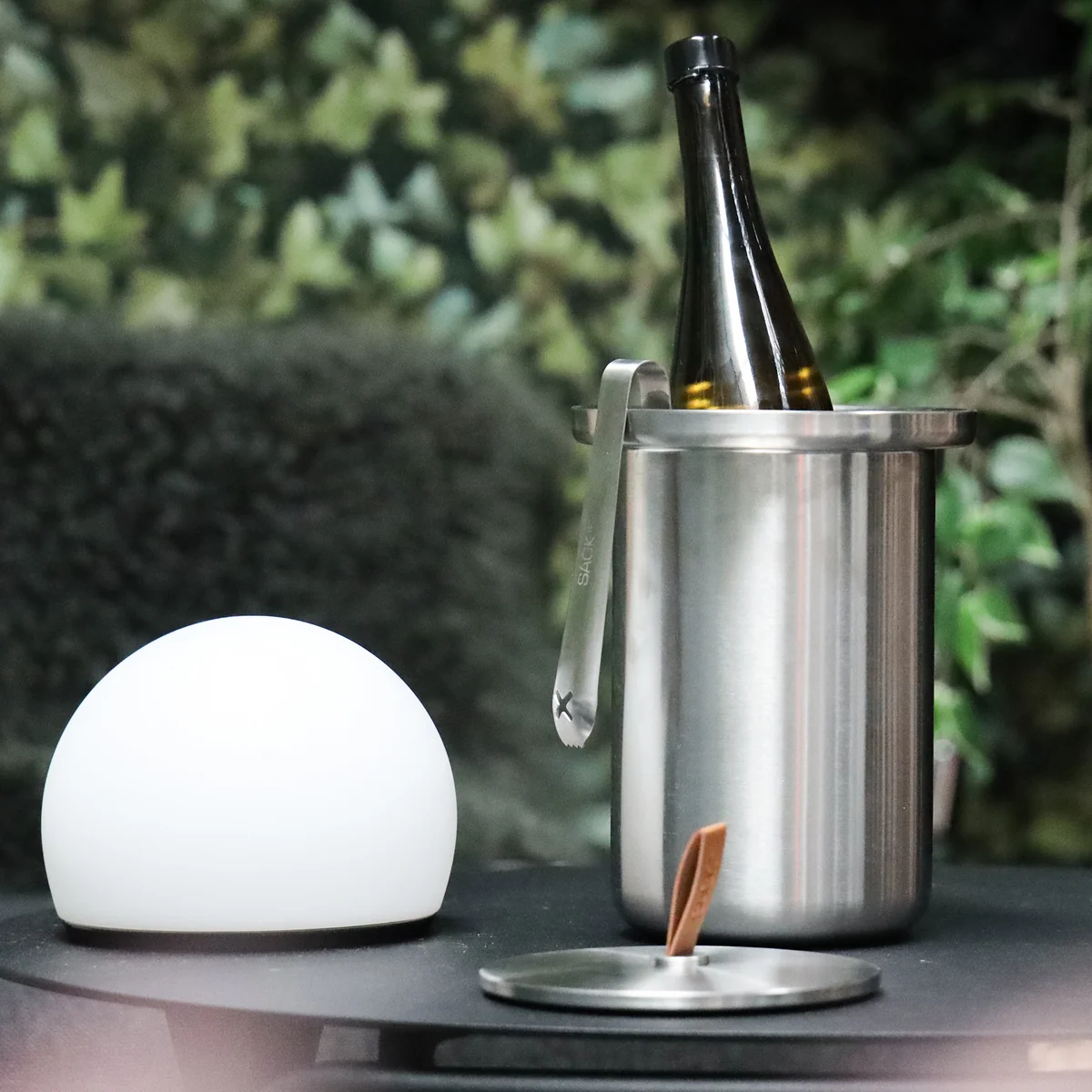 Le seau à vin du fabricant danois SACK it séduit par son design simple et sa forme géométrique. Grâce à l'acier poli et rayé et à la poignée en cuir, le seau à vin est très élégant et attire l'attention à l'intérieur et à l'extérieur de votre maison. Il peut être utilisé seul, mais aussi en combinaison avec le support Patio Indoor / Outdoor , qui peut servir de rallonge.