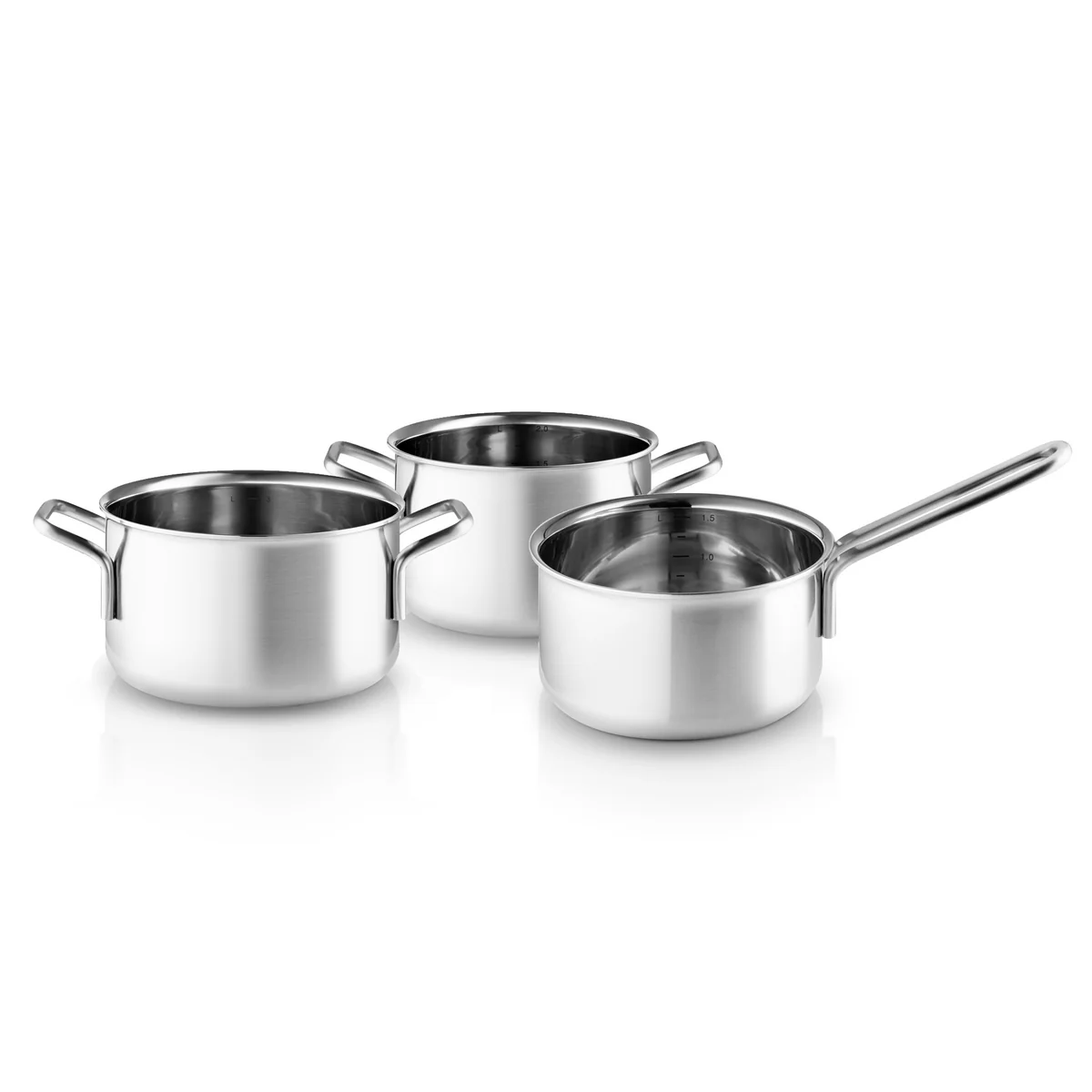 Fabriquées à partir d'acier inoxydable haut de gamme, ces casseroles sont très résistantes à l'usure et donc particulièrement robustes. Elles sont par ailleurs très faciles à nettoyer. Toutes les casseroles Eva Trio en acier inoxydable peuvent ainsi être lavées sans problème dans le lave-vaisselle et être mises au four. Après la préparation des repas, les casseroles Eva Trio peuvent être facilement empilées les unes sur les autres du fait de leurs différentes dimensions et être rangées dans les armoires de la cuisine.