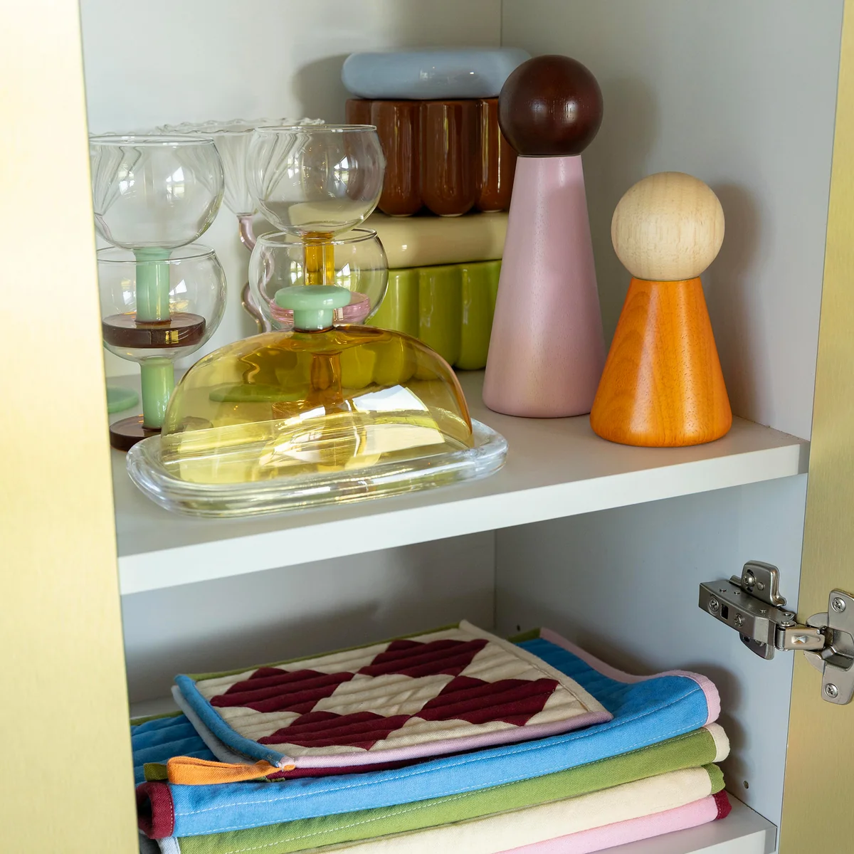 Grâce à sa taille compacte, le beurrier s'adapte parfaitement aux tables de petit-déjeuner, aux tables d'appoint ou aux buffets tout en apportant une touche décorative. L'aspect verre aux couleurs assorties confère à la table du petit-déjeuner une atmosphère vivante et conviviale - idéale pour des matinées agréables en famille ou entre amis.