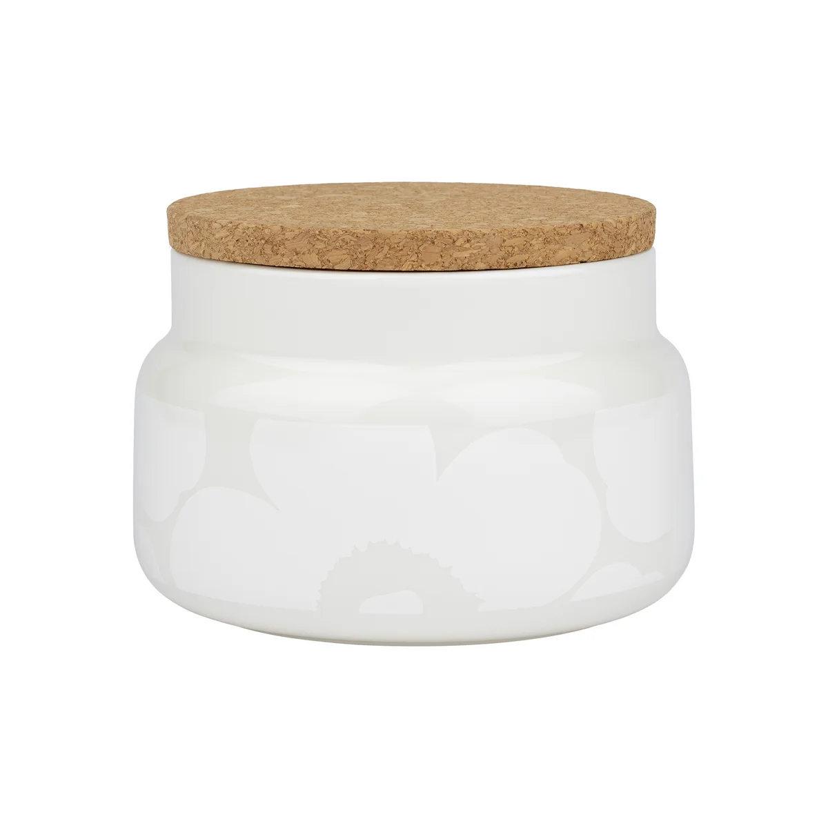 La boîte de rangement Oiva Unikko de la maison finlandaise Marimekko séduit par son motif floral et ses détails raffinés. La boîte d'une contenance de 700 ou 1200 ml est fabriquée en faïence blanche avec des pigments métalliques dorés. La boîte est munie d'un couvercle en liège dont la face intérieure est décorée du logo Marimekko .
