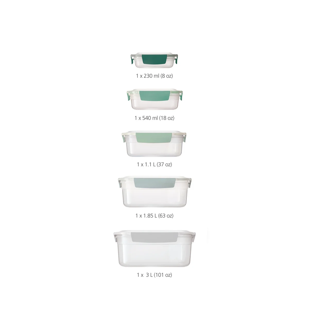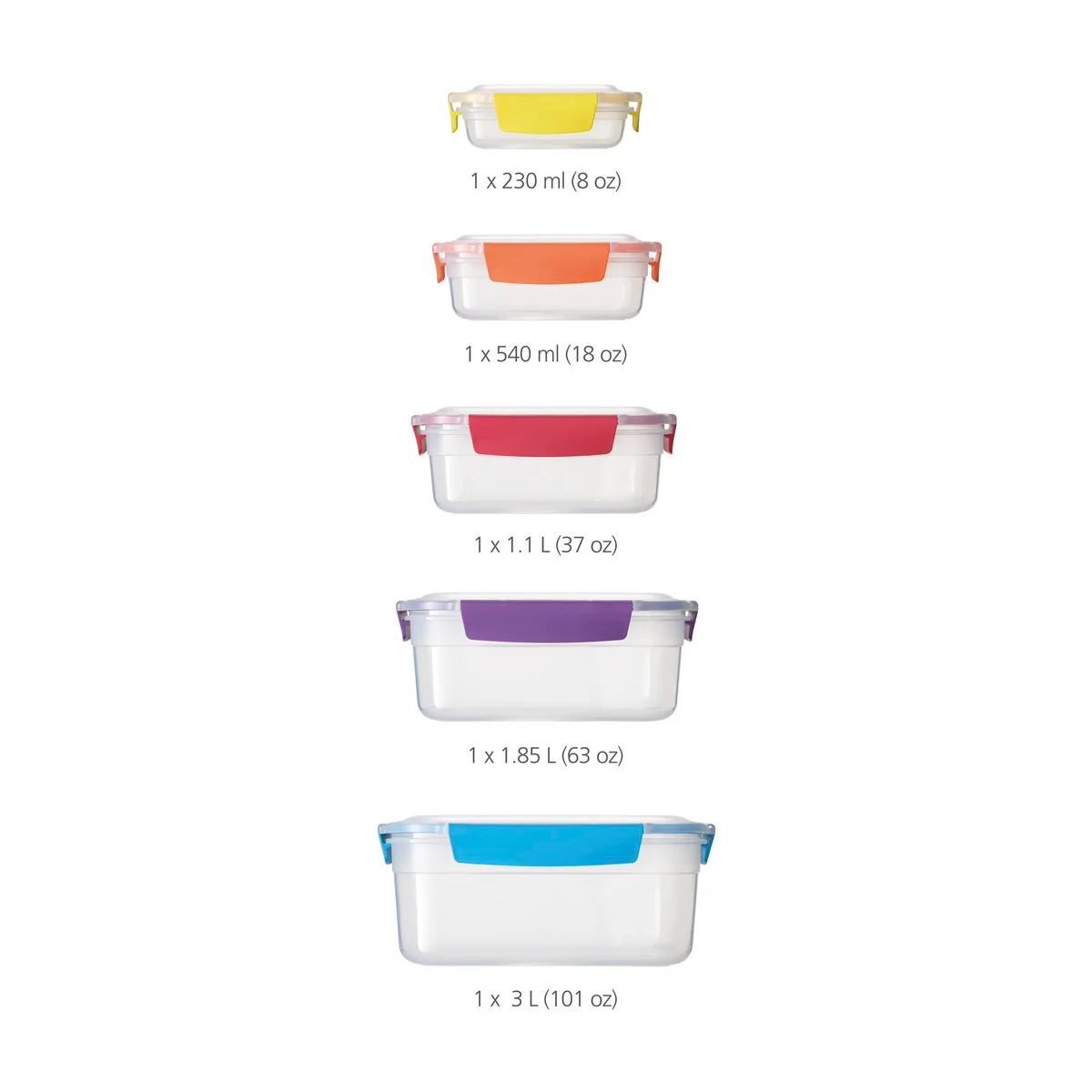 | Détails | Inclus dans le set : 1x 230 ml, 1x 540 ml, 1x 1,1 l, 1x 1,85 l, 1x 3 l. |