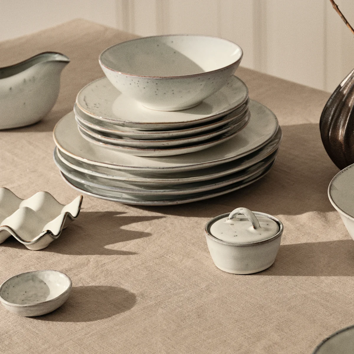 La saucière Nordic Sand permet d'ajouter une touche d'élégance à la table de la salle à manger. Ce bol en grès émaillé réactif a une couleur beige douce qui souligne la beauté tranquille du bol à sauce. Grâce à l'émail réactif, chaque pièce présente un motif unique, ce qui fait de chaque bol une pièce unique dans la collection de vaisselle.