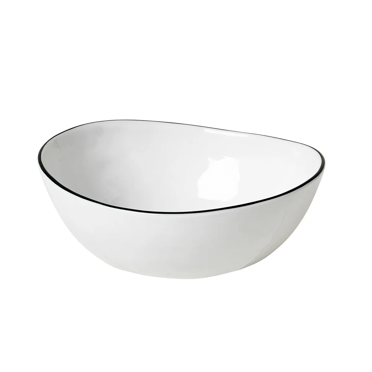 Dans le bol Salt bol de Broste Copenhagen , on peut déguster avec style les céréales du matin, une soupe chaude ou une salade fraîche. Le bol fait partie de la Salt collection et se caractérise par des formes classiques alliant élégance et netteté. L'émail blanc est complété par des bords noirs peints à la main. C'est au cours du processus de cuisson que l'émail acquiert sa texture et sa couleur distinctes, rendant chaque pièce de vaisselle unique.