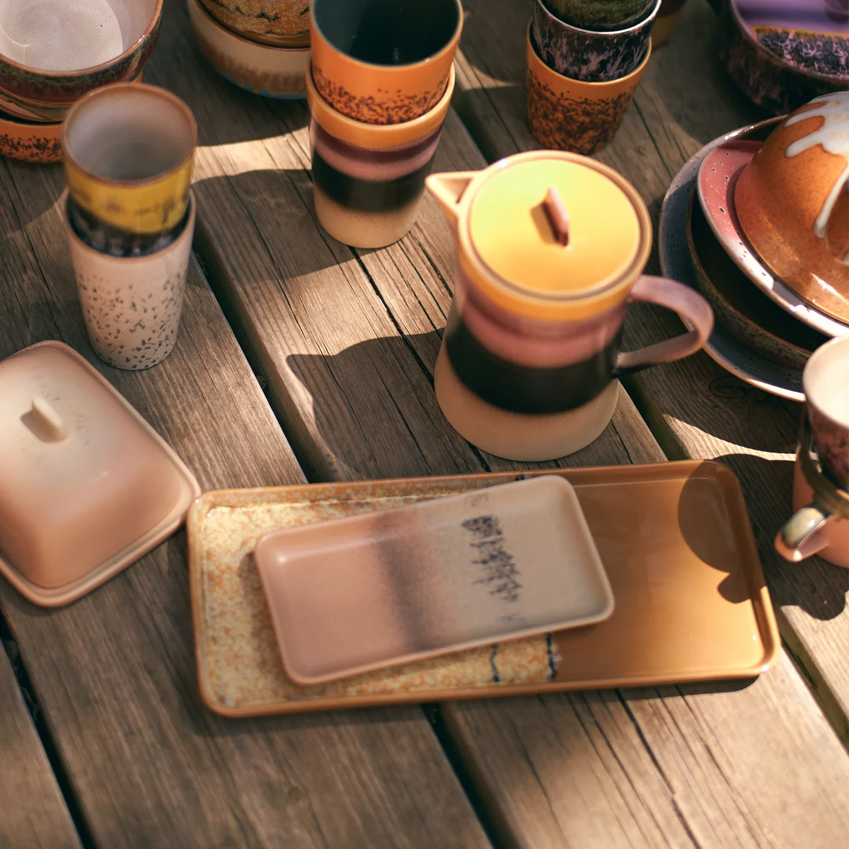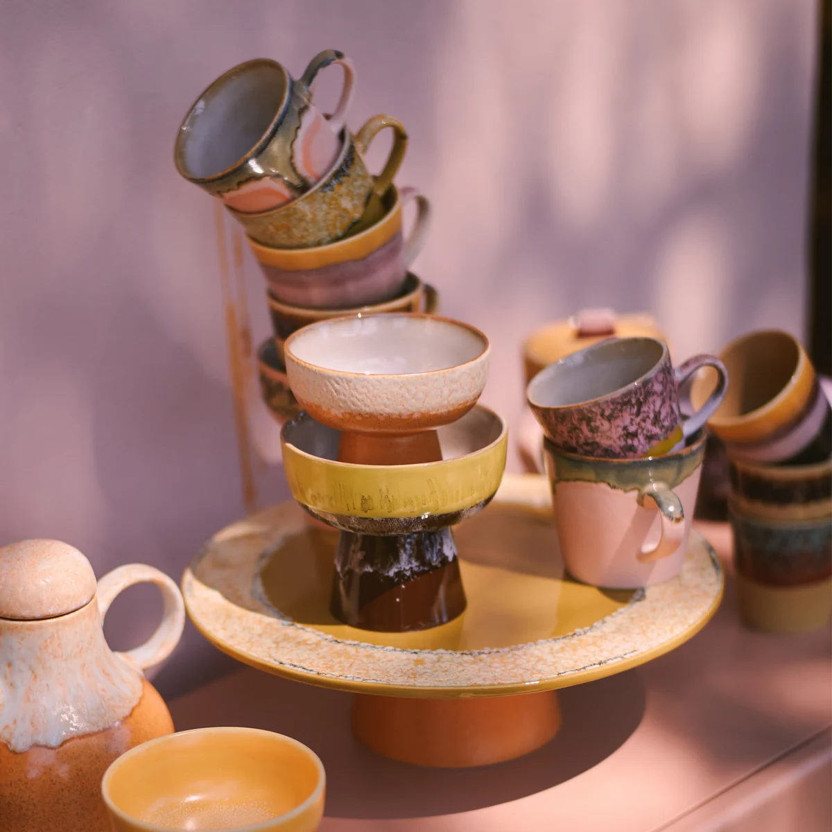 Le HKliving 70's est un merveilleux complément pour tous les foyers qui apprécient l'ambiance nostalgique des années 1970. Ce plat à gâteau capture parfaitement l'esthétique unique de cette époque, avec ses couleurs vives et son motif caractéristique. Chaque plat à gâteau est fabriqué à la main, ce qui lui confère un charme individuel d'inspiration vintage. Sa taille généreuse offre suffisamment de place pour accueillir de délicieux gâteaux, pâtisseries ou autres gourmandises que vous souhaitez servir à vos invités. Avec le HKliving 70's vous pouvez apporter non seulement du goût, mais aussi du style à votre table, tout en faisant entrer la magie des décennies passées dans votre maison.