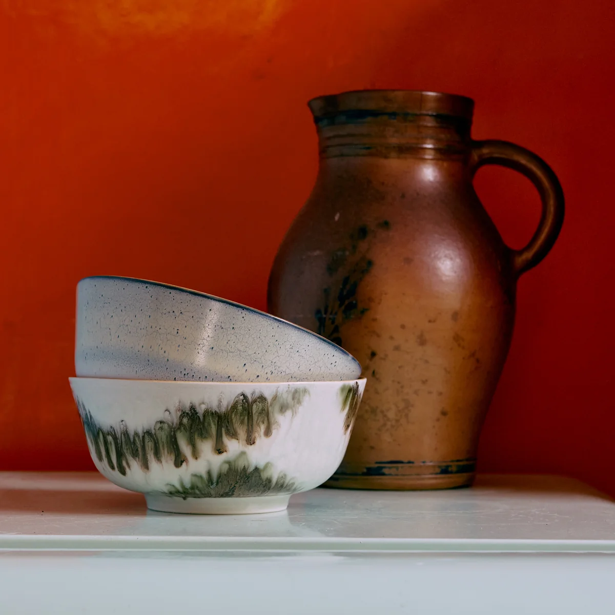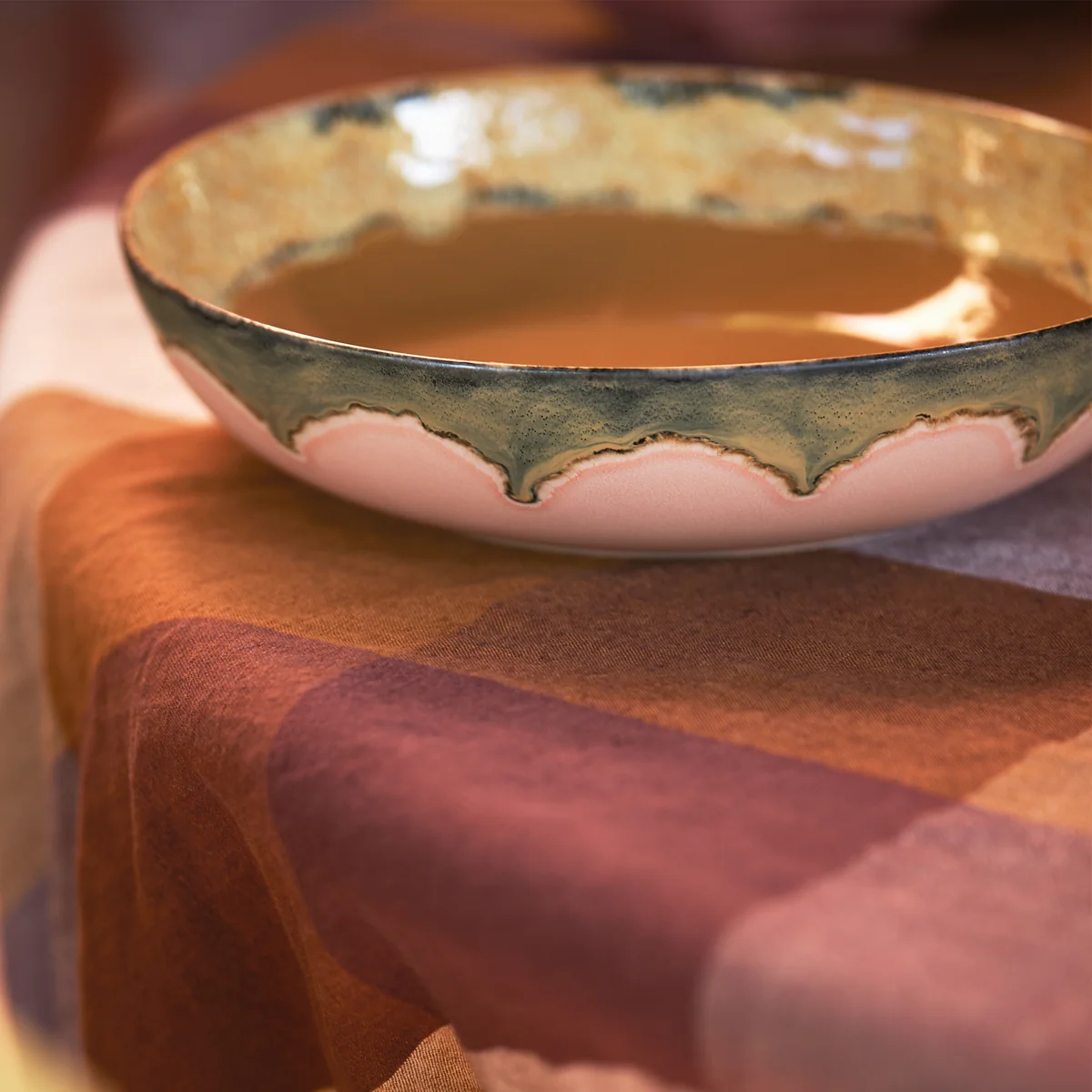 Les bols sont fabriqués en céramique. Fabriquée à la main, chaque coupe est absolument unique. Disponibles en sets, les bols sont particulièrement pratiques et conviennent pour un usage quotidien ou pour une table de fête. Outre les bols, la série comprend des assiettes, des gobelets, des tasses et des pichets. 70's série de HKliving .