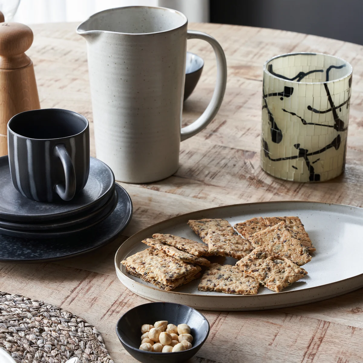 Dans la collection Pion collection de vaisselle de House Doctor , les aliments et les boissons peuvent être présentés de manière à la fois rustique et stylée. Les pièces sont recouvertes d'un émail réactif qui non seulement s'harmonise avec les autres pièces de la collection, mais aussi avec les couleurs. Pion collection, mais se marie aussi très bien avec d'autres vaisselles rustiques. Deux couleurs différentes sont disponibles. Que ce soit pour un brunch dominical agréable avec des amis ou un dîner décontracté avec la famille. Pion La vaisselle de House Doctor apporte une touche de style.