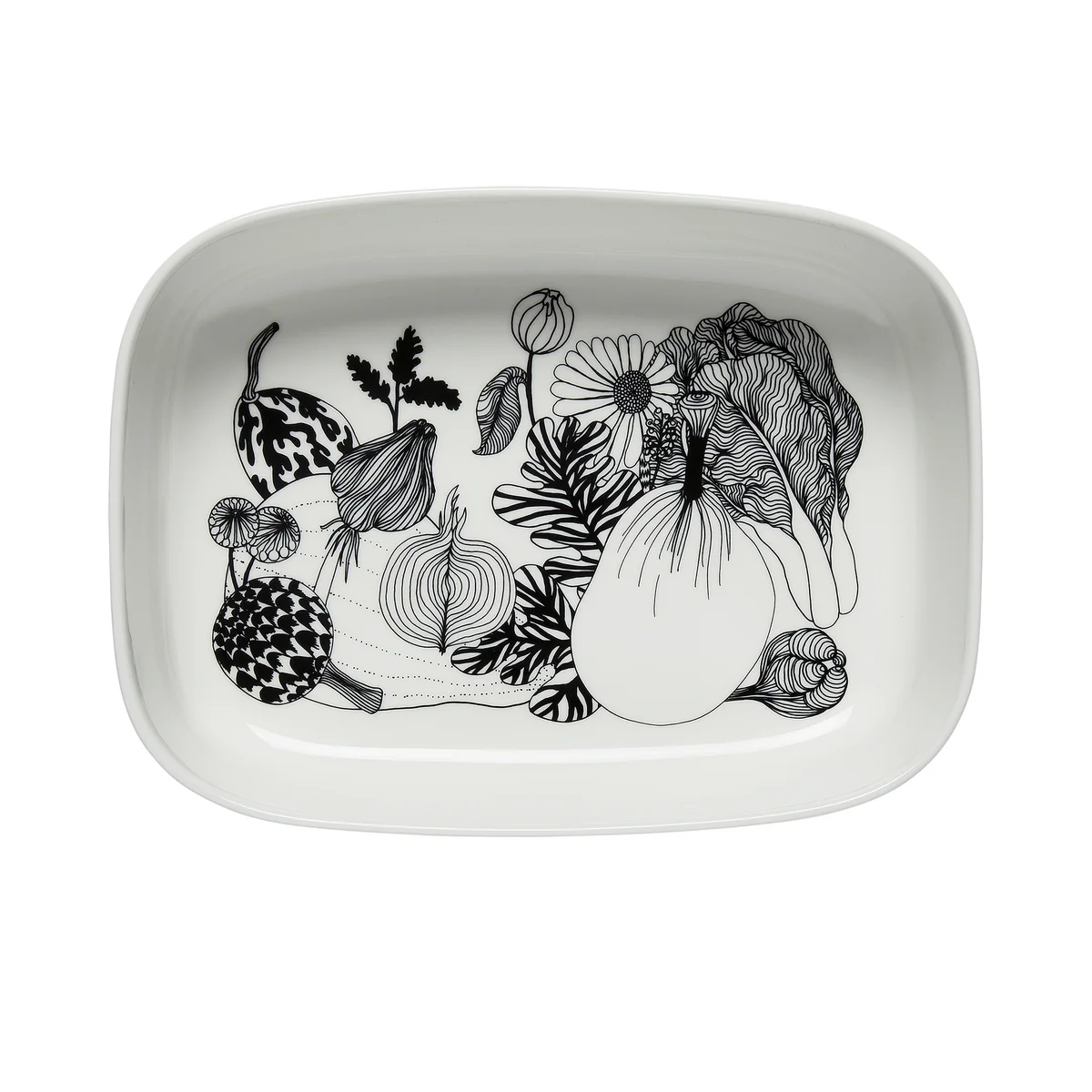 Siirtolapuutarha (fin. petit jardin) est le nom de la collection Marimekko , qui comprend des assiettes, des tasses et des bols au design charmant dans un noir et blanc sobre.