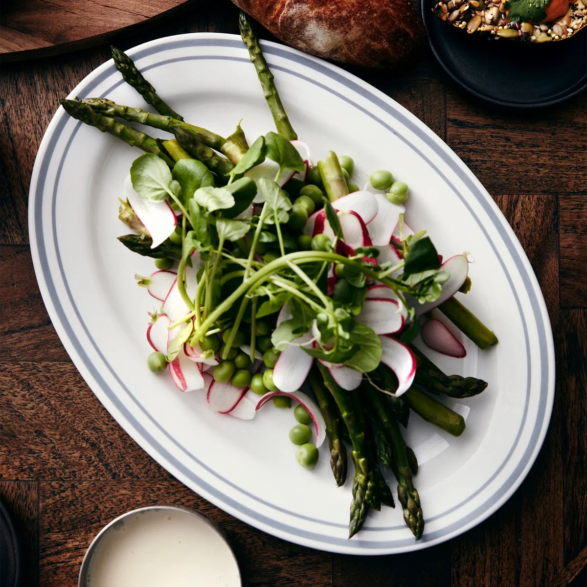 Le site Bistro bol de la maison danoise Nicolas Vahé . Le bord de l'assiette est décoré de deux bandes grises qui encadrent la nourriture et la mettent en valeur. Comme son nom l'indique, le bol nommé Bistro parfait pour servir le repas de manière décontractée, comme dans un restaurant français. Bistro pour servir les plats. Les bols peuvent être idéalement combinés avec le reste de la Bistro -collection de Nicolas Vahé .