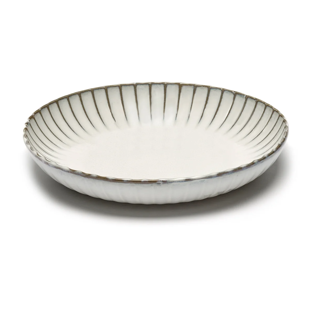 Le Inku bol de service de Serax peut être utilisé pour servir des soupes, des bouillons ou des desserts. Avec son agréable motif de coquillages sur la surface intérieure de l'assiette, le service est esthétiquement valorisé et peut être combiné de multiples façons.