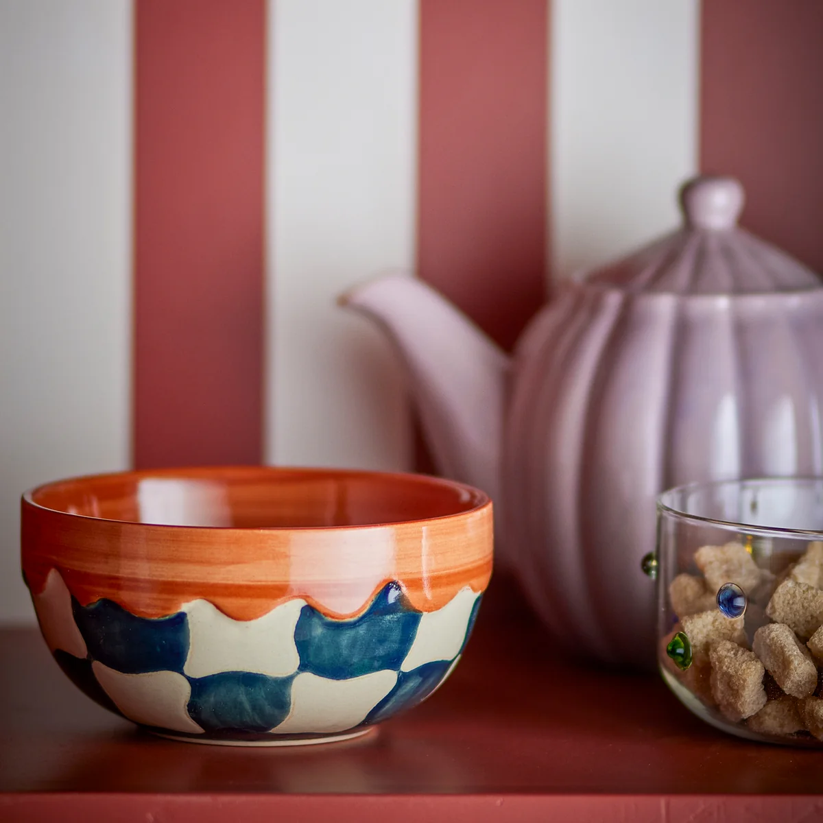 Le bol Check de Bloomingville apporte l'art artisanal et le design moderne sur la table. Fabriquée en faïence de haute qualité, elle séduit par son motif graphique en bleu foncé, beige et terre cuite chaude. Chaque bol est peint à la main - ce qui crée de fines différences dans le motif et l'intensité des couleurs, faisant de chacun d'eux une véritable pièce unique.