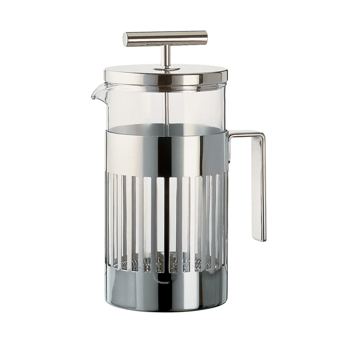 La « 9094 » avec verre résistant à la chaleur a été conçue en 1986 par le célèbre architecte et designer Aldo Rossi. Alessi produit cette cafetière élégante et simple en deux tailles différentes.