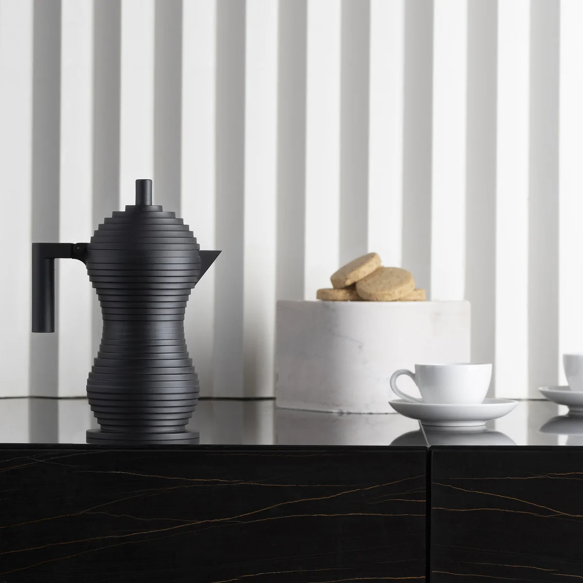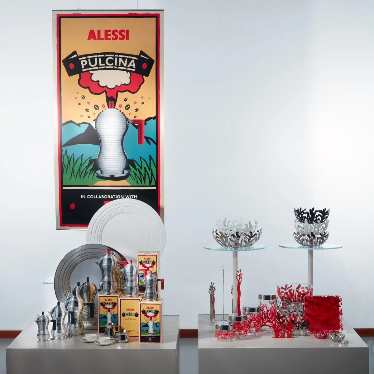Pulcina de Alessi , née de l'esprit créatif de l'architecte Michele De Lucchi, est une cafetière espresso pour les vrais amateurs de café. Son design révolutionnaire associe une technologie développée par illycaffè à partir de recherches sur la dynamique du flux de chaleur et l'expérience de projet de Alessi .