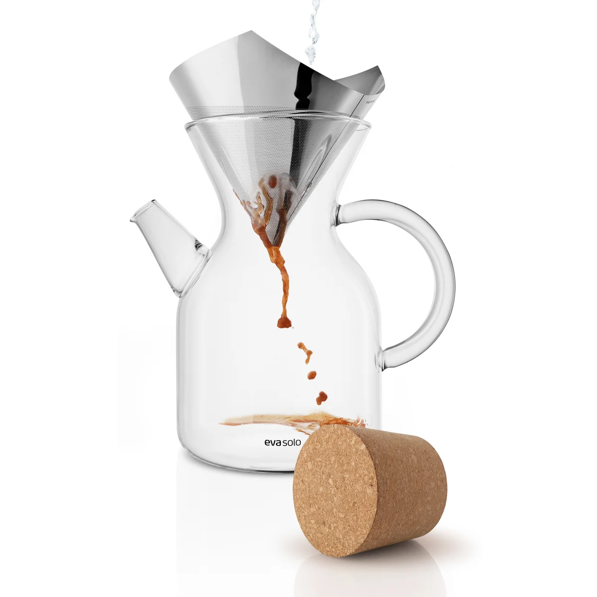 Après que le café ait entièrement traversé le filtre, le filtre peut être enlevé et remplacé par un bouchon de liège pratique. La cafetière est fabriquée en verre borosilicate et résiste également aux températures élevées.