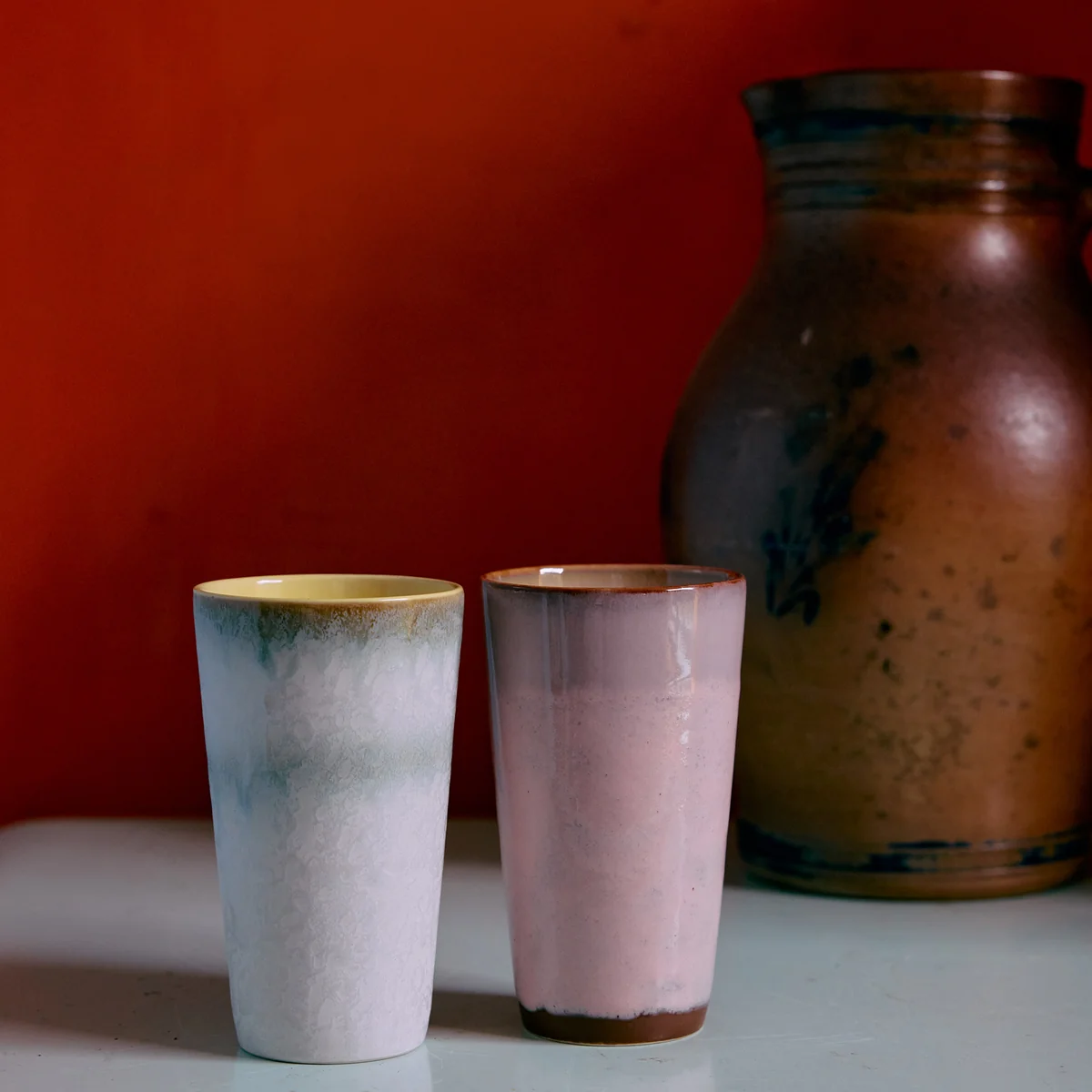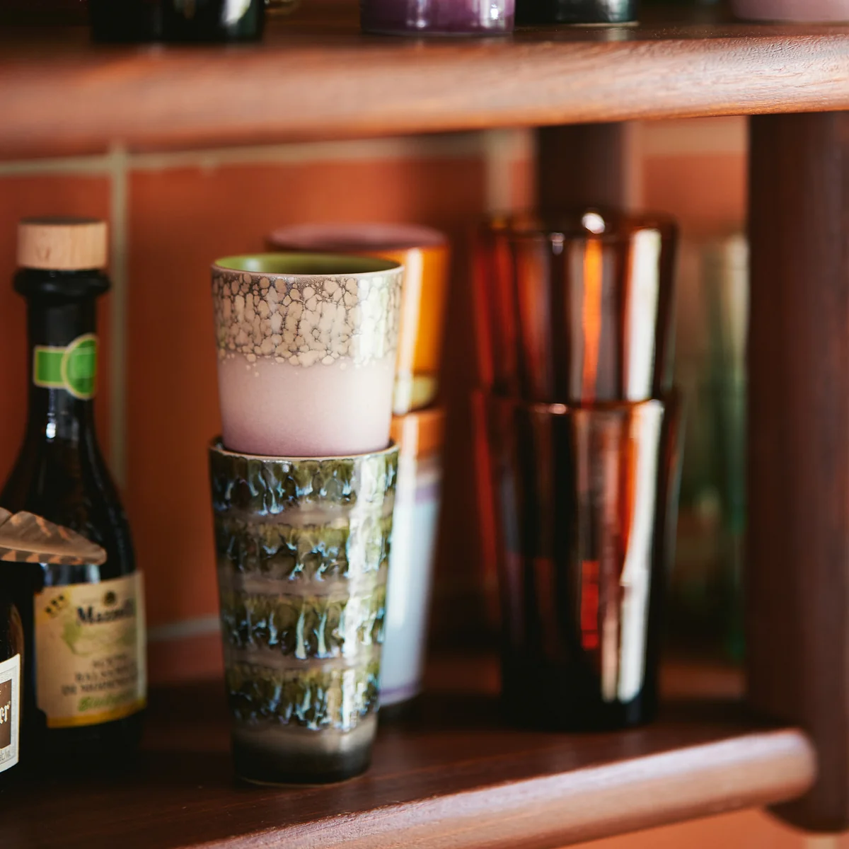 Une raison de se réjouir pour les collectionneurs de longue date comme pour les nouveaux venus : les tasses à latte macchiato 70's de HKliving en grès sont aussi uniques que l'empreinte digitale d'une personne, car elles sont fabriquées et émaillées à la main. C'est ainsi que naissent les magnifiques motifs et couleurs qui valorisent individuellement chaque table à manger et chaque armoire à vaisselle. De plus, la porcelaine aux parois épaisses protège des mains brûlantes.