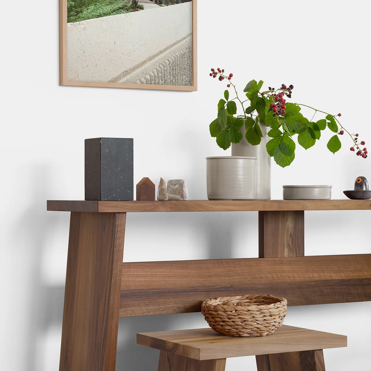 Le matériau doit son esthétique unique au traitement de la céramique avec du sel, ce qui crée une structure de surface particulière. La forme cylindrique souligne le langage de design réduit et intemporel et, en combinaison avec l'utilisation de matériaux naturels, elle donne une impression de tradition et de qualité.