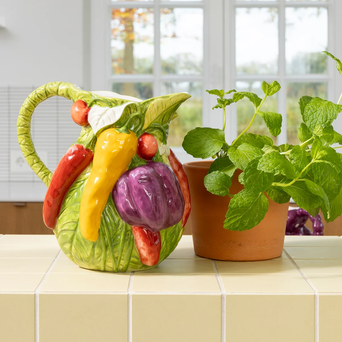 Le pichet Legume apporte une touche de fraîcheur sur la table avec son motif vivant de poivrons, de piments ou d'autres légumes colorés. Inspiré des designs de pichets traditionnels, il allie fonctionnalité et charme ludique et convient parfaitement pour servir de l'eau, du vin ou des boissons aromatisées. Que ce soit sur la table de la salle à manger ou sur le plan de travail de la cuisine, ce pichet met de bonne humeur et se combine idéalement avec d'autres pièces de la collection Legume.