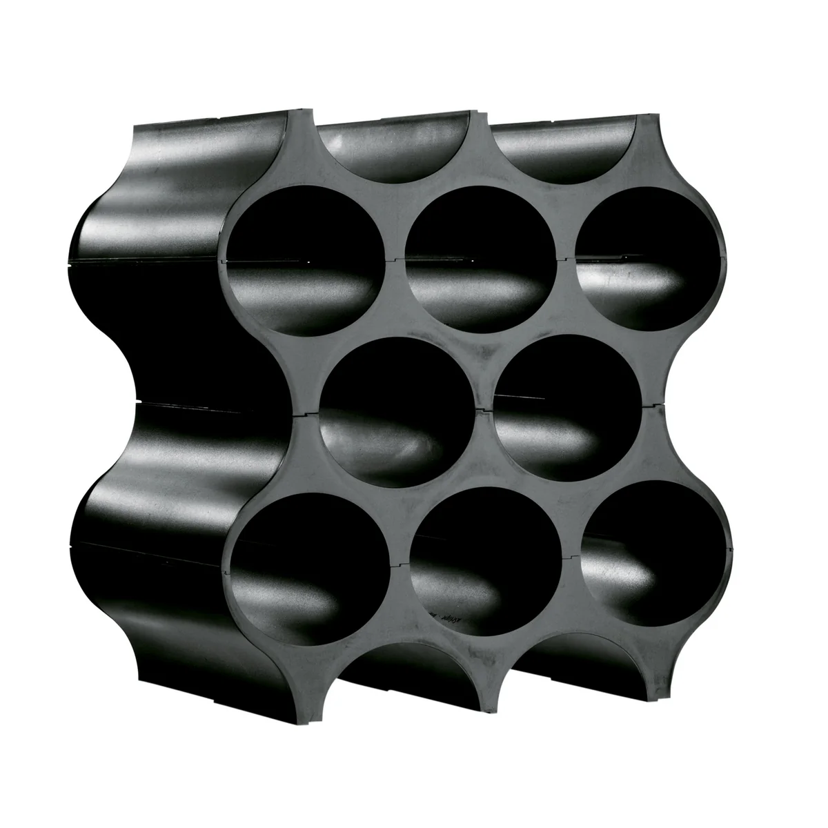 Dans un modules,peuvent être rangées, un total de 10 bouteilles en toute sécurité. Les grosses ouvertures de diamètre 9 cm font place à toutes sortes de bouteilles de vin, bière, eau et limonades. Mais aussi des magazines roulés, des chaussures comme les ballerines et sandales peuvent être rangés dans le module de rangement.