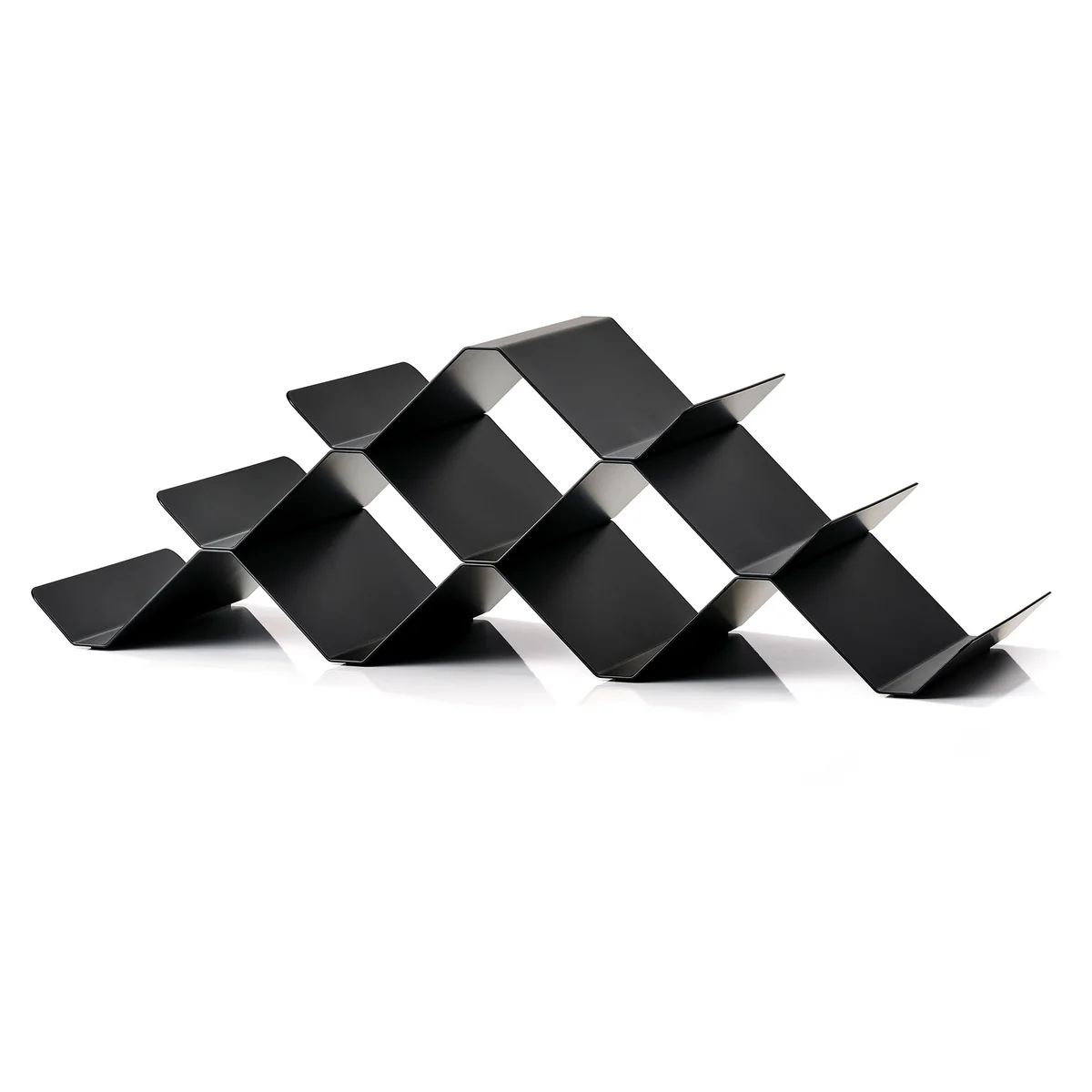 Le casier à vin Rocks du label danois Zone Denmark séduit par son design pyramidal. Il peut contenir jusqu'à neuf bouteilles de vin, mais peut aussi être réduit si nécessaire. Cette étagère élégante est fabriquée en fer et est disponible en différentes couleurs. Elle peut être placée sur des étagères dans le salon ou dans le bar de la maison.