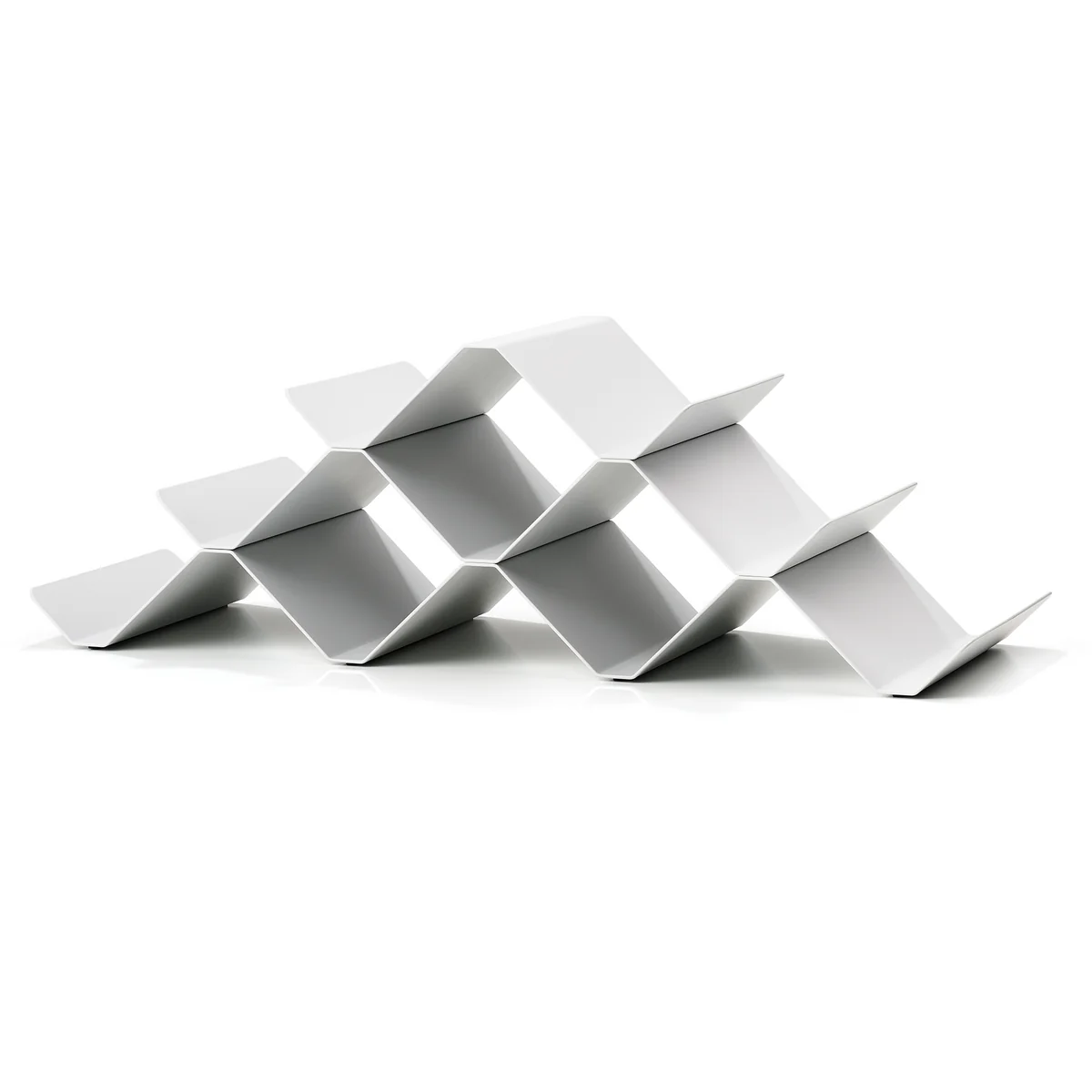 Le casier à vin Rocks du label danois Zone Denmark séduit par son design pyramidal. Il peut contenir jusqu'à neuf bouteilles de vin, mais peut aussi être réduit si nécessaire. Cette étagère élégante est fabriquée en fer et est disponible en différentes couleurs. Elle peut être placée sur des étagères dans le salon ou dans le bar de la maison.