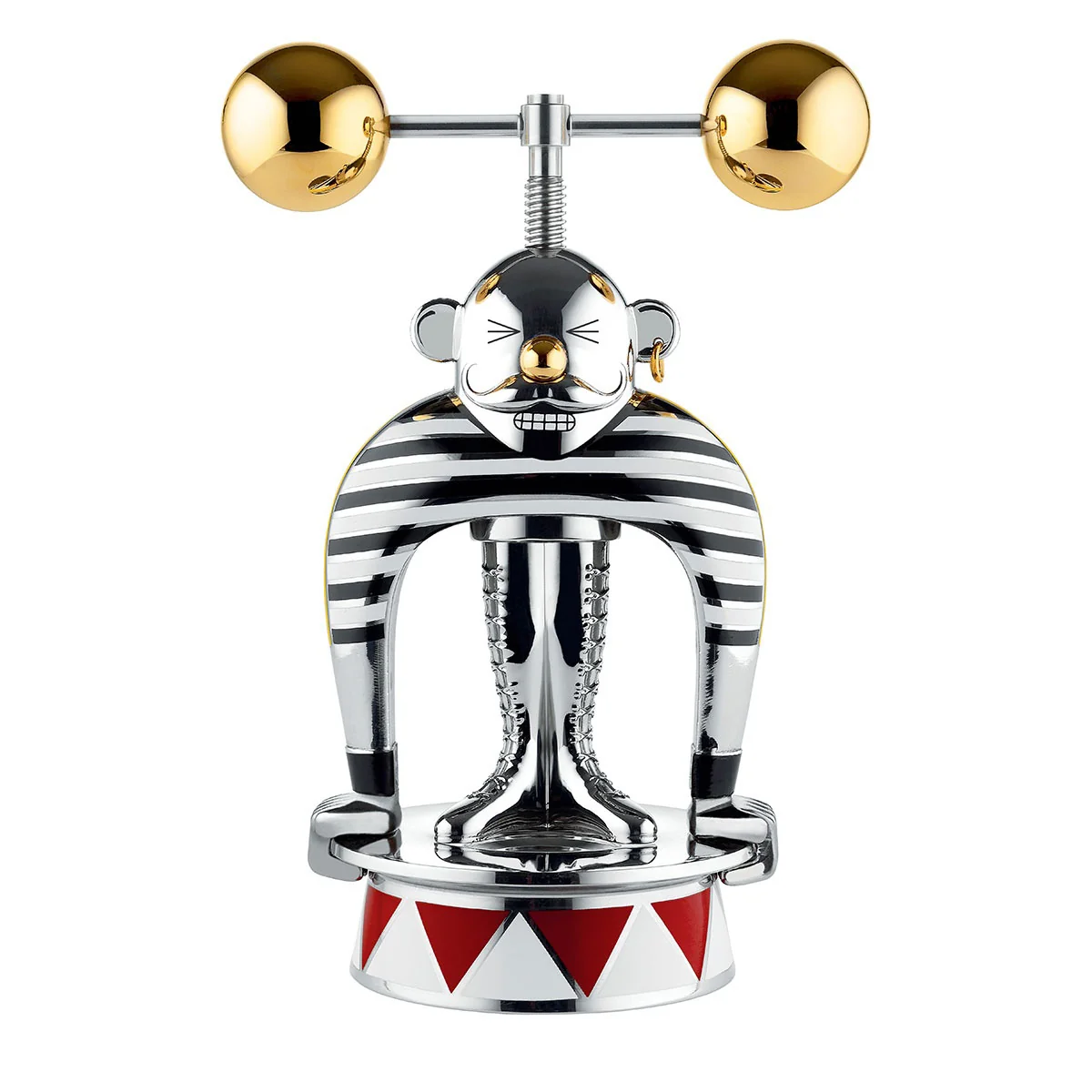 Le casse-noisettes The Strongman fait partie de l'édition limitée de la collection Circus d'Alessi. Il a été conçu par Marcel Wanders et il s'agit d'un casse-noisettes en forme de monsieur muscles. La noix doit être posée sur le piédestal de cirque, puis écrasée par les pieds de l'homme fort à l'aide du système de vissage. Ses mains s'appuient sur la plateforme et son visage est déformé par l'effort, car deux poids sont posés sur sa tête, permettant d'écraser les noix par une simple rotation.