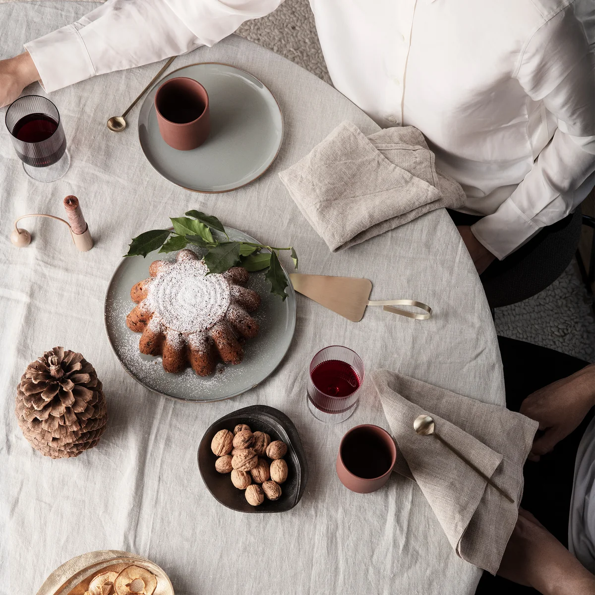 Le Fein Cake Lifter de Ferm Living est un ustensile pratique sur la table posée et sert avec élégance les gâteaux et autres délices. L'élévateur à gâteau est en laiton recouvert de PVD et avec son éclat doré, sa forme simple et son contour élégant, il attire le regard dans la cuisine et la salle à manger.