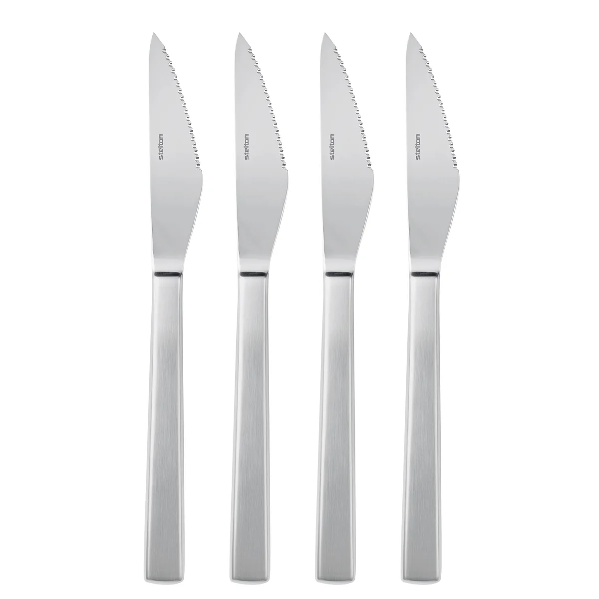 Le Maya couteau à steak de la marque Stelton est le complément parfait pour les couverts de table de la maison. Le couteau à steak a - comme le reste de la série Maya -du designer Tias Eckhoff, a une forme triangulaire caractéristique. Le couteau est très agréable à tenir en main et son aspect est extrêmement intemporel et attrayant. Le tranchant ondulé du couteau à steak permet de couper la viande ou les légumes grillés. Surtout en combinaison avec d'autres pièces de la série Maya -La série donne une image homogène. Le couteau à steak est disponible en set de 4 pièces.