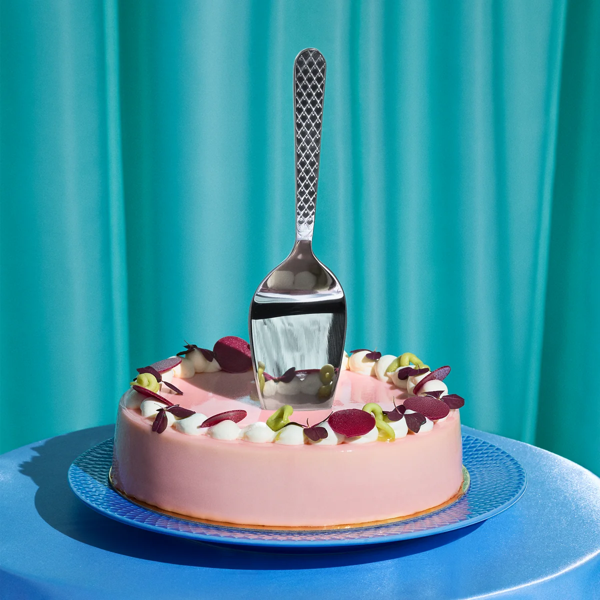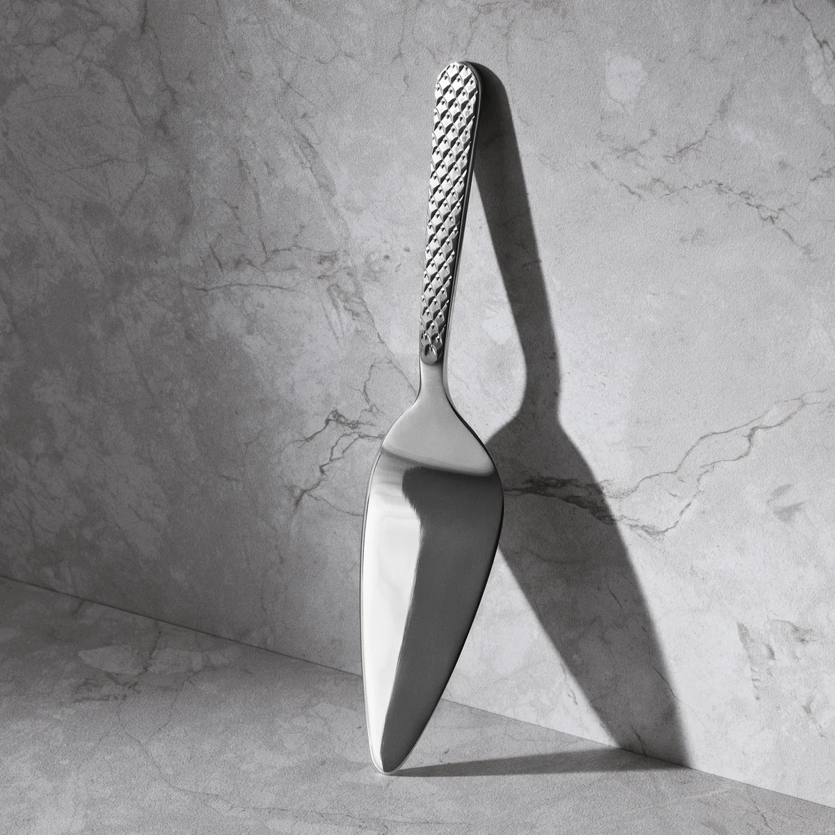 Fabriquée en acier inoxydable poli, la pelle à gâteau séduit par sa qualité durable et sa surface noble et brillante. Le manche est orné d'un relief en losange typique, qui reprend le langage des formes de la série en porcelaine du même nom et assure une grande valeur de reconnaissance.