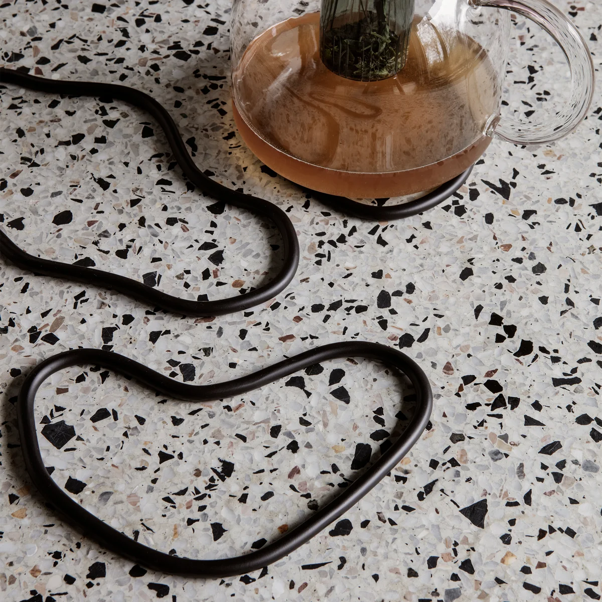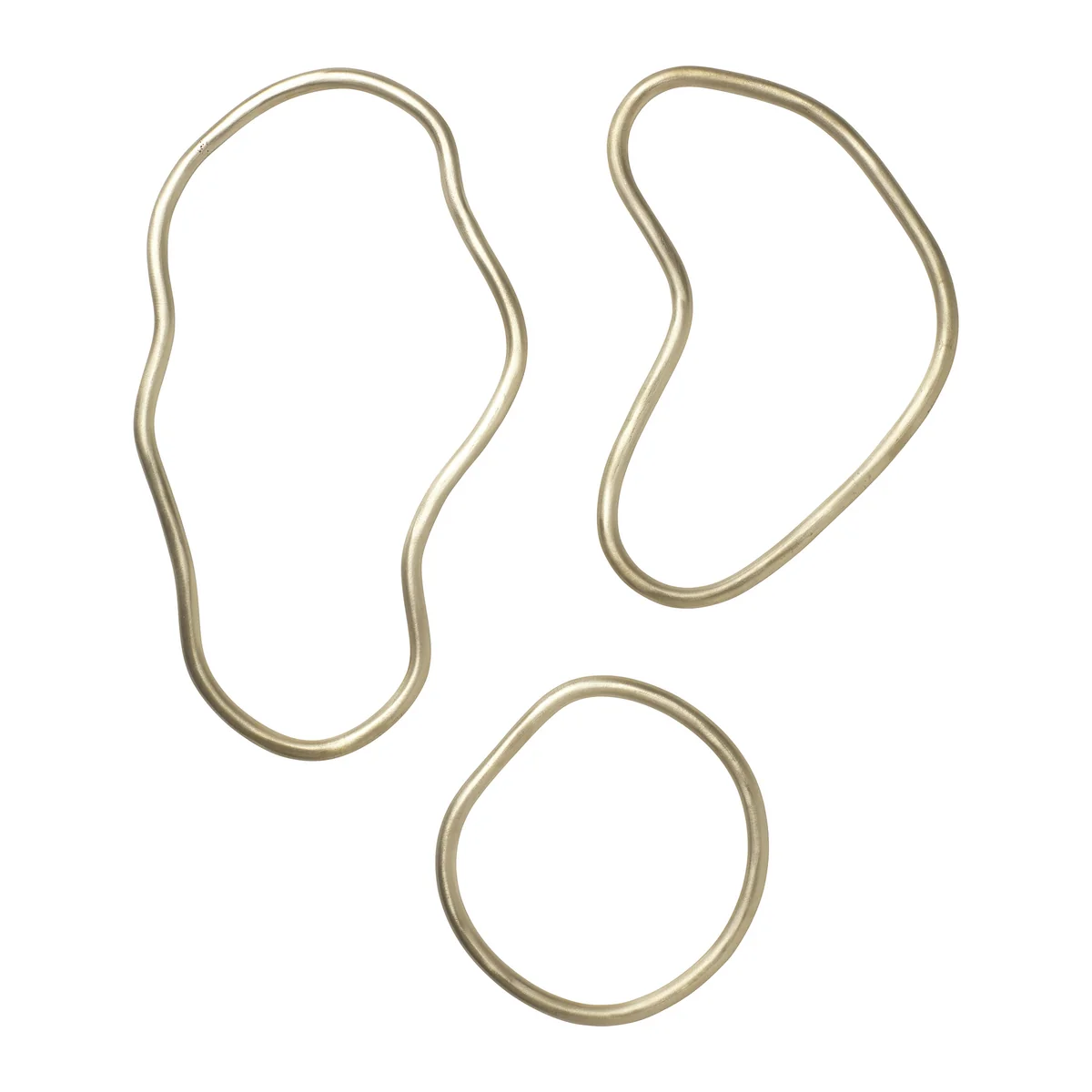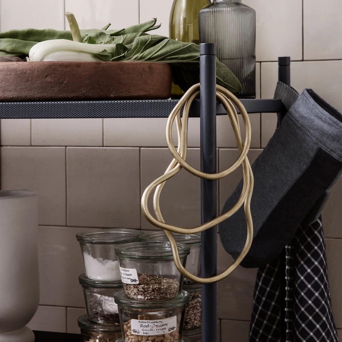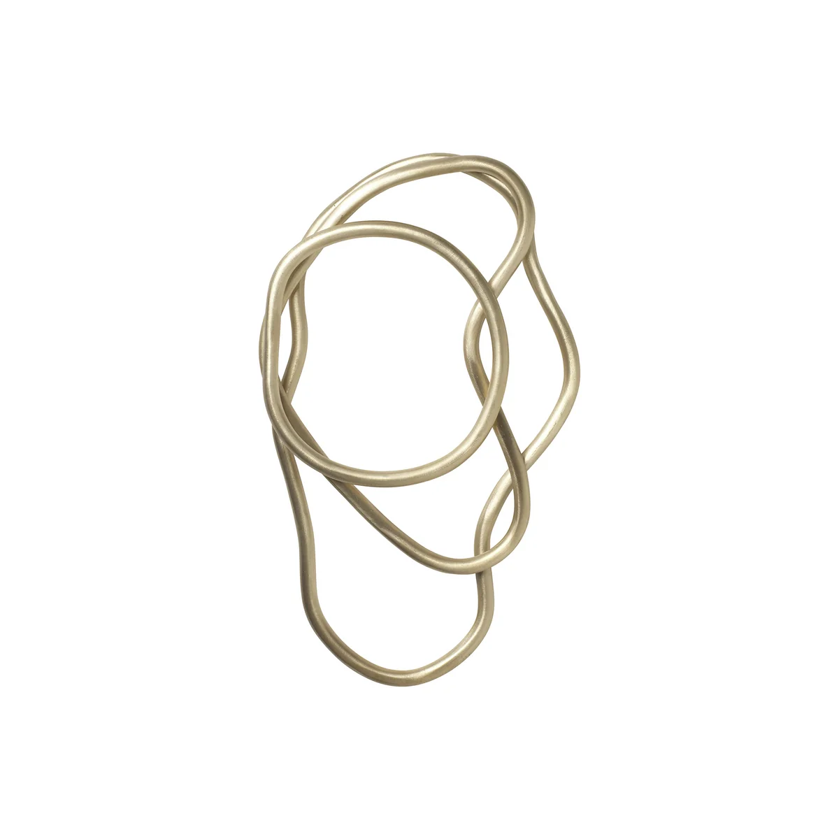 Avec les sous-bocks Pond de Ferm Living, la table de salle à manger est protégée de manière optimale contre les taches causées par les casseroles et poêles chaudes. L'ensemble de trois anneaux en laiton est de forme organique et rappelle donc l'eau en mouvement irrégulier. Avec leurs silhouettes incurvées, les anneaux s'adaptent non seulement à toutes les tailles de pots, mais ils donnent aussi un accent visuel et attirent le regard sur la table. Si les sous-verres ne sont pas utilisés, ils peuvent être placés de façon décorative sur un crochet dans la cuisine en scène.