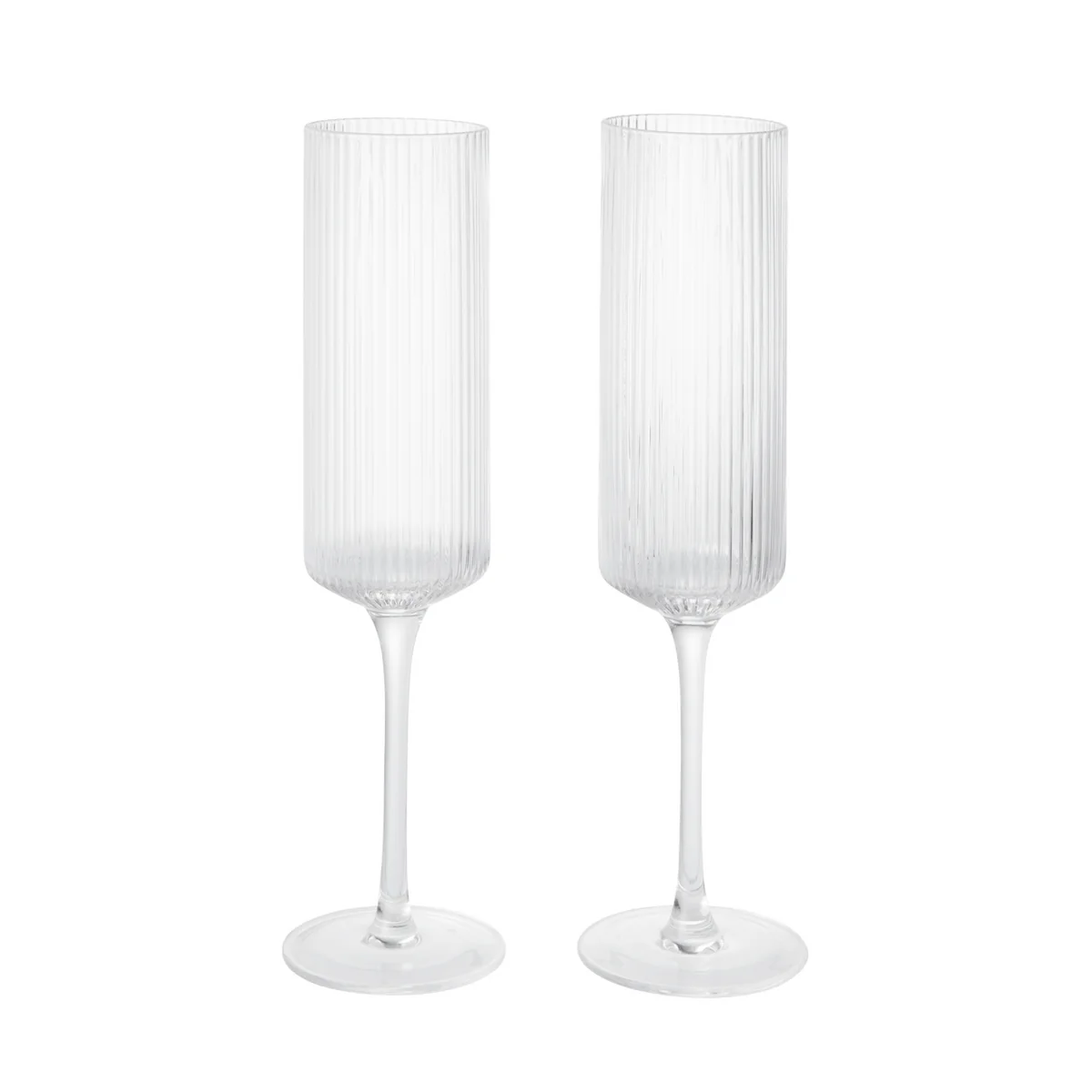 La Ripple flûte à champagne de Ferm Living vient compléter la célèbre gamme Ripple -Une flûte élégante pour les moments particuliers. La flûte est soufflée dans un moule et se distingue par sa surface caractéristique finement striée, qui confère au verre dynamisme et structure. Sa silhouette haute et élancée favorise la remontée des bulles et préserve parfaitement l'arôme des vins mousseux. Que ce soit pour une réception festive ou un toast stylé, ce verre allie fonction et design de manière contemporaine.