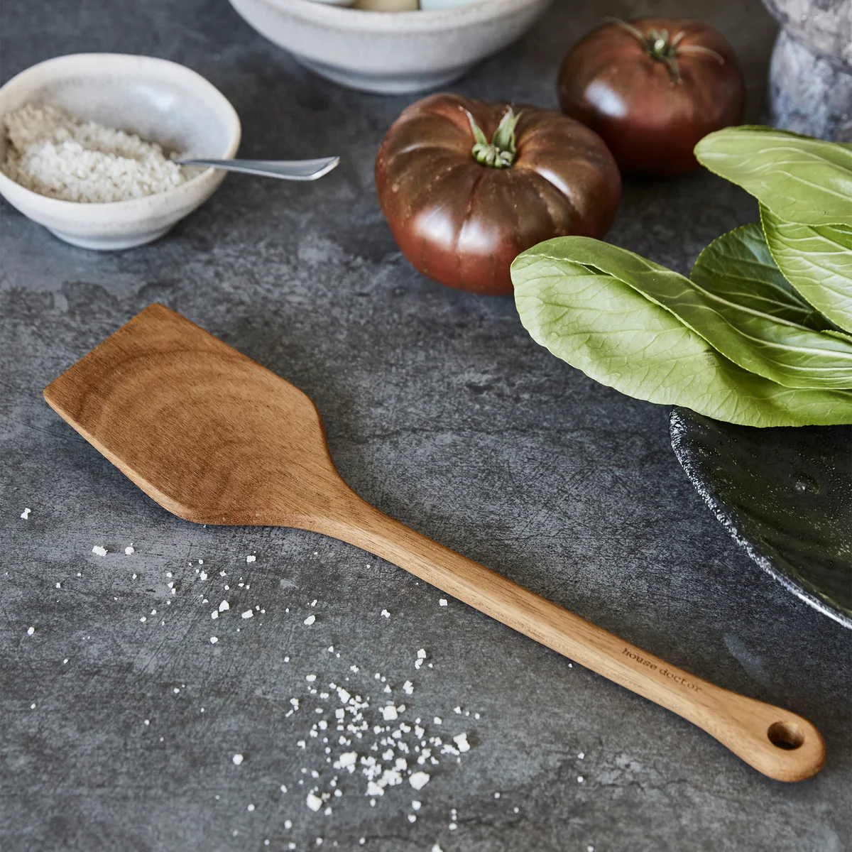 Le grattoir Eya en bois d'acacia de qualité supérieure est un outil de cuisine indispensable, idéal pour retourner les aliments délicats. Avec son bord avant fin, il préserve la surface de vos ustensiles de cuisine et séduit par son design naturel.