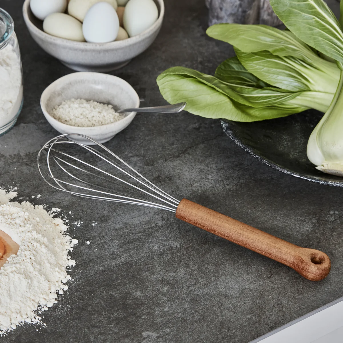 Le fouet Eya allie un design élégant à une fonctionnalité pratique. Avec son manche en bois d'acacia de qualité supérieure et son acier inoxydable robuste, il est parfait pour mélanger et battre dans la cuisine.
