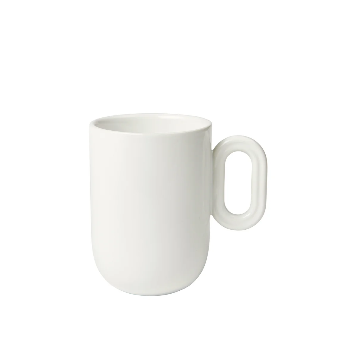 La collection, fabriquée en faïence blanche et recouverte d'un émail "Chalk White", confère à la table une note accueillante. La céramiste danoise Julie Bonde a conçu cette série dont les deux anneaux marquants encadrent artistiquement les assiettes.