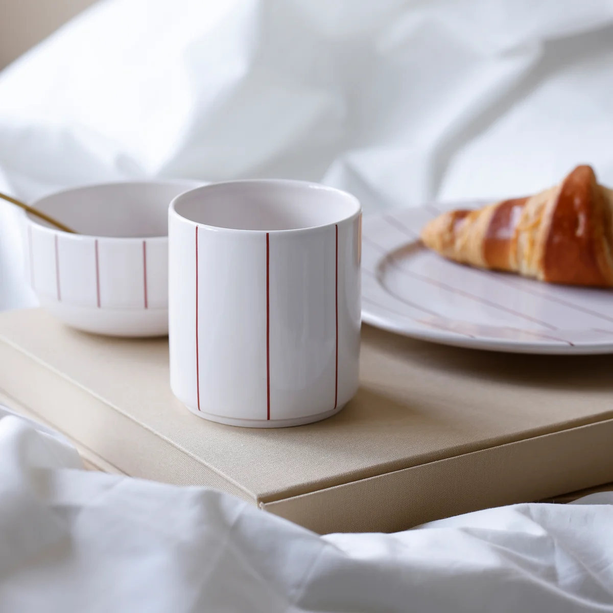 La tasse pyjama de Design Letters . Les snacks et les pyjamas forment une combinaison parfaite, et il est désormais possible de s'habiller soi-même ainsi que ses plats préférés dans une tenue de pyjama élégante. La Collection Pyjamas est le choix idéal pour le petit-déjeuner, les en-cas du soir ou le café du matin. Avec ses rayures délicates, elle est fantastique sur la table et apporte du charme sur l'étagère de la cuisine.