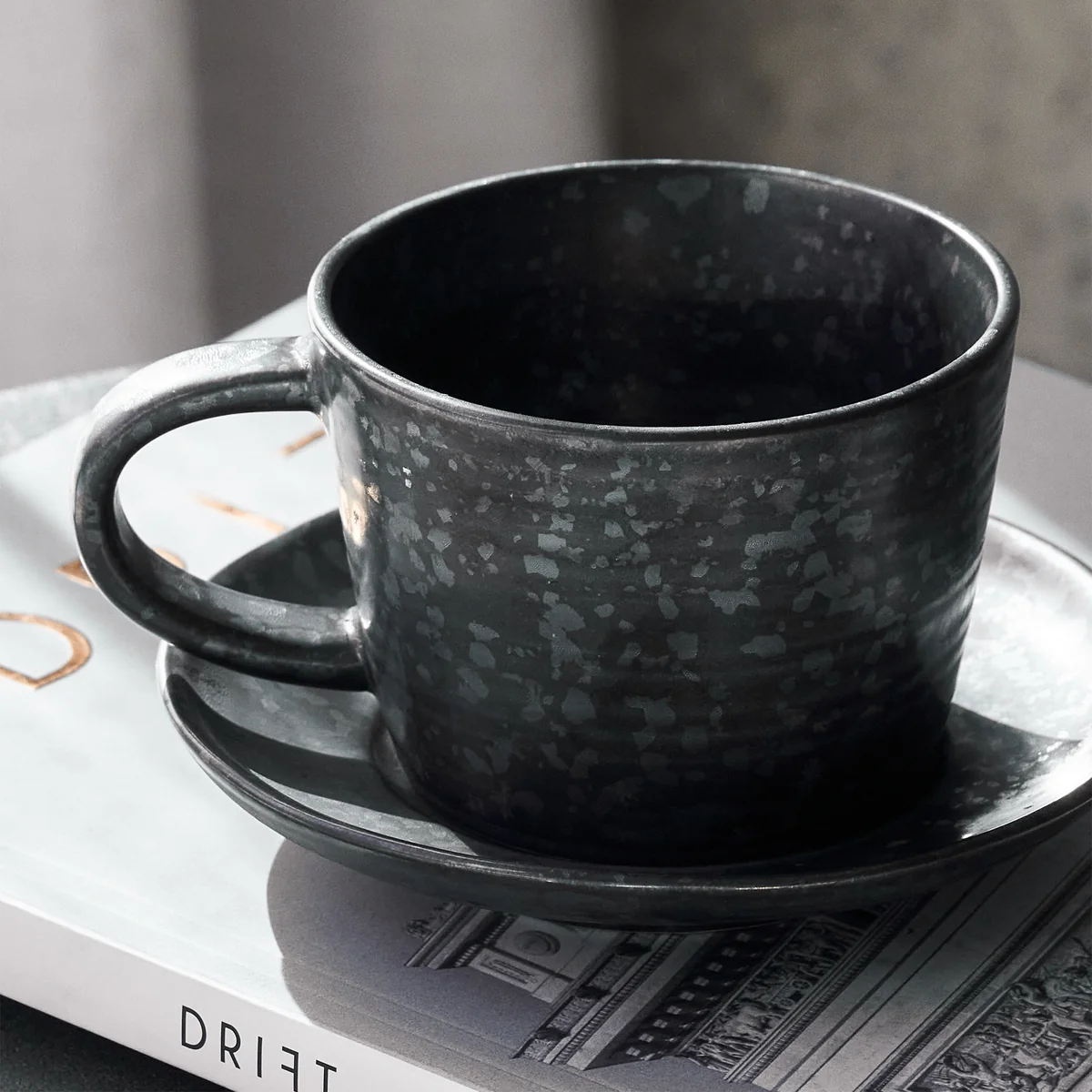 Tasse avec soucoupe en grès