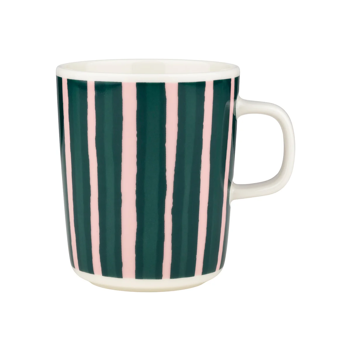 Le gobelet Oiva Piccolo avec anse de Marimekko est fabriqué en grès blanc qui résiste au lave-vaisselle, au four, au micro-ondes et au congélateur.