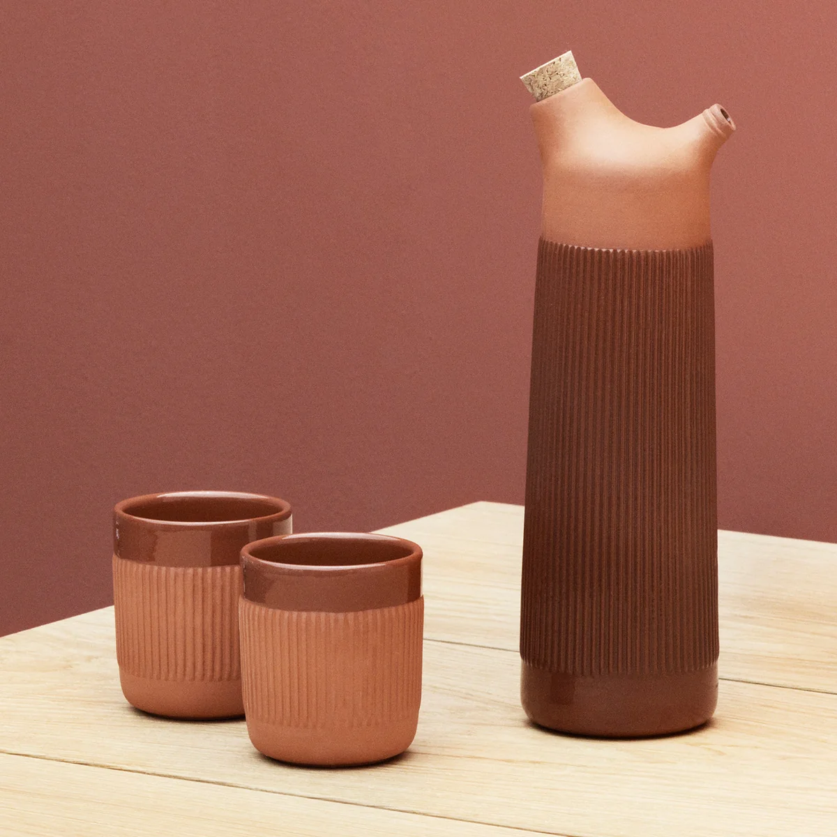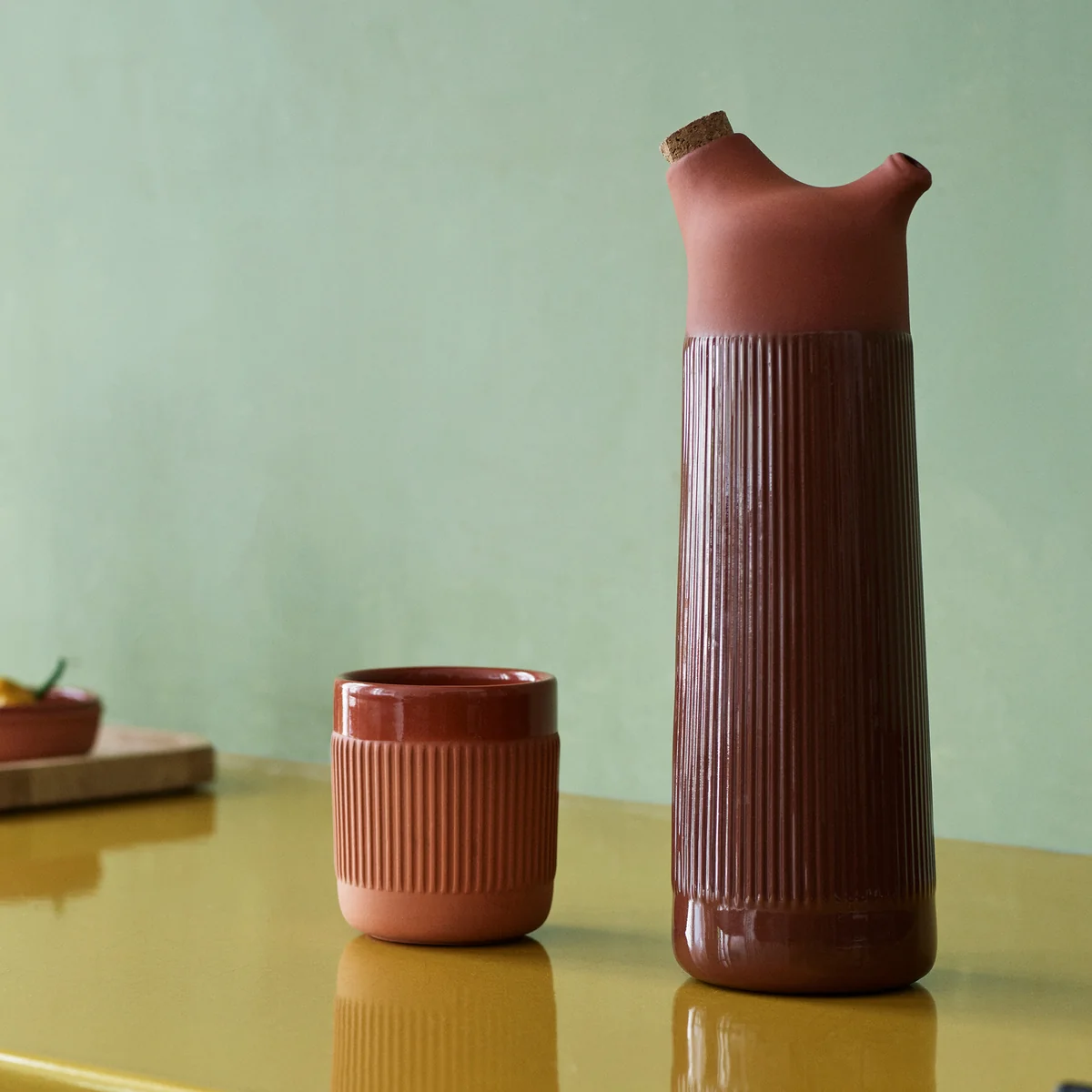Conçu par Simon Legald, le design du mug est à la fois tendu et doux, avec un aspect convivial et artisanal mis en valeur par la terre cuite rustique. Ces teintes apportent une touche de chaleur méditerranéenne à la table à manger.
