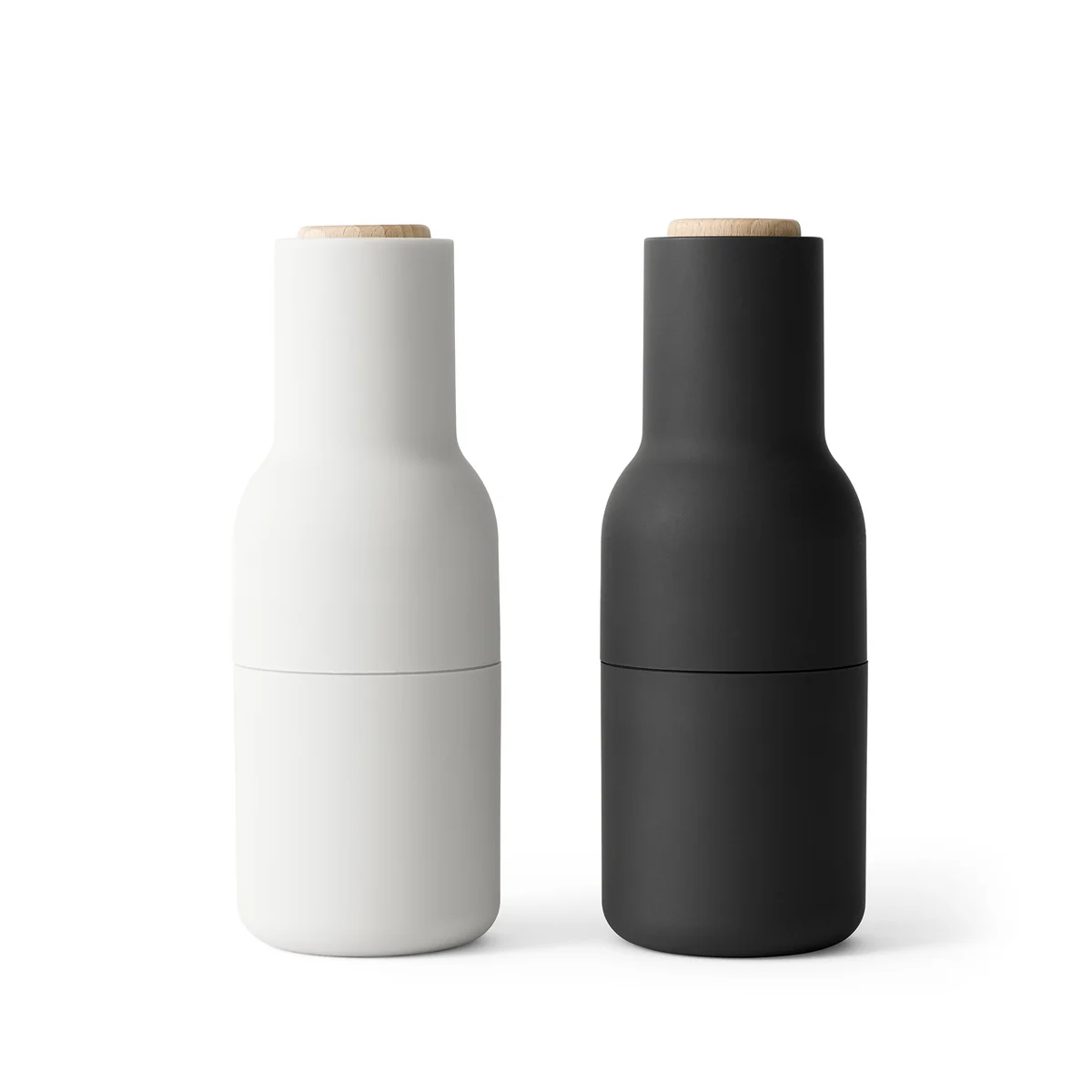 Le matériau utilisé pour les Bottle Grinder les designers de Norm et Audo du plastique ABS avec un revêtement en caoutchouc. Le moulin est équipé d'un broyeur en céramique durable et performant qui réduit le sel et le poivre en petits morceaux de manière fiable.