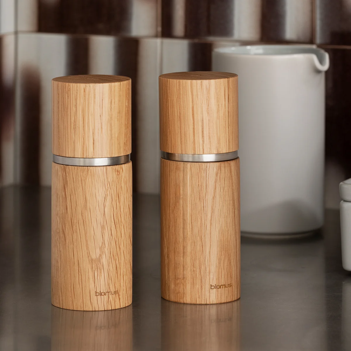 Donnez à votre cuisine et à votre table à manger une touche de clarté scandinave - avec le set de moulins Pepe de Blomus . Fabriqués en chêne laqué transparent certifié FSC®, ces moulins allient un design parfait à une qualité durable. Ce duo noble séduit par son moulin en céramique réglable en continu, qui assure une mouture régulière du sel et du poivre - exactement à votre goût.