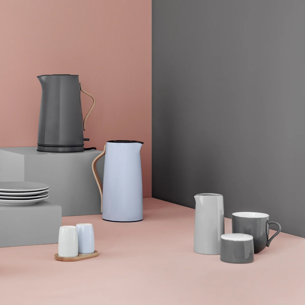 Traditionnel et innovant à la fois. C'est l'essence même de la nouvelle cafetière à vide Emma de Stelton . Le corps harmonieux de la cruche en acier inoxydable a une belle finition brillante qui crée une fantastique harmonie ton sur ton avec le reste de la série Emma.