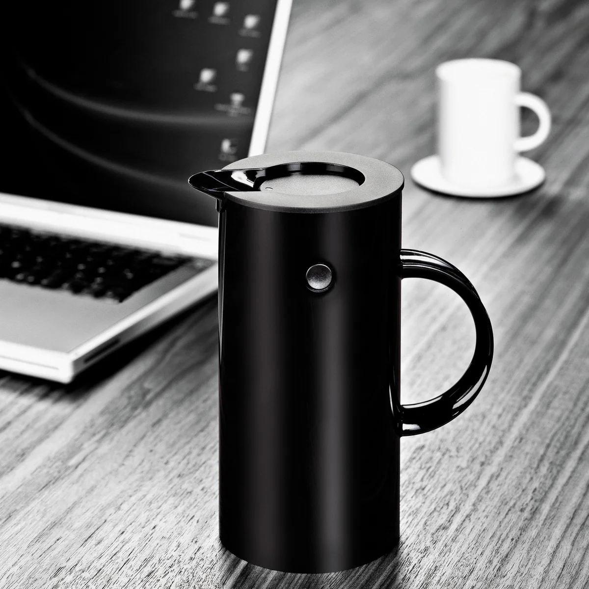 Le pichet isotherme de Stelton avec sa célèbre fermeture basculante d'Erik Magnussen est un classique. Son design beau et compact, la remarquable qualité de fabrication et sans oublier la fermeture basculante unique, font du pichet un produit intemporel et prisé au sein de la collection de Stelton.