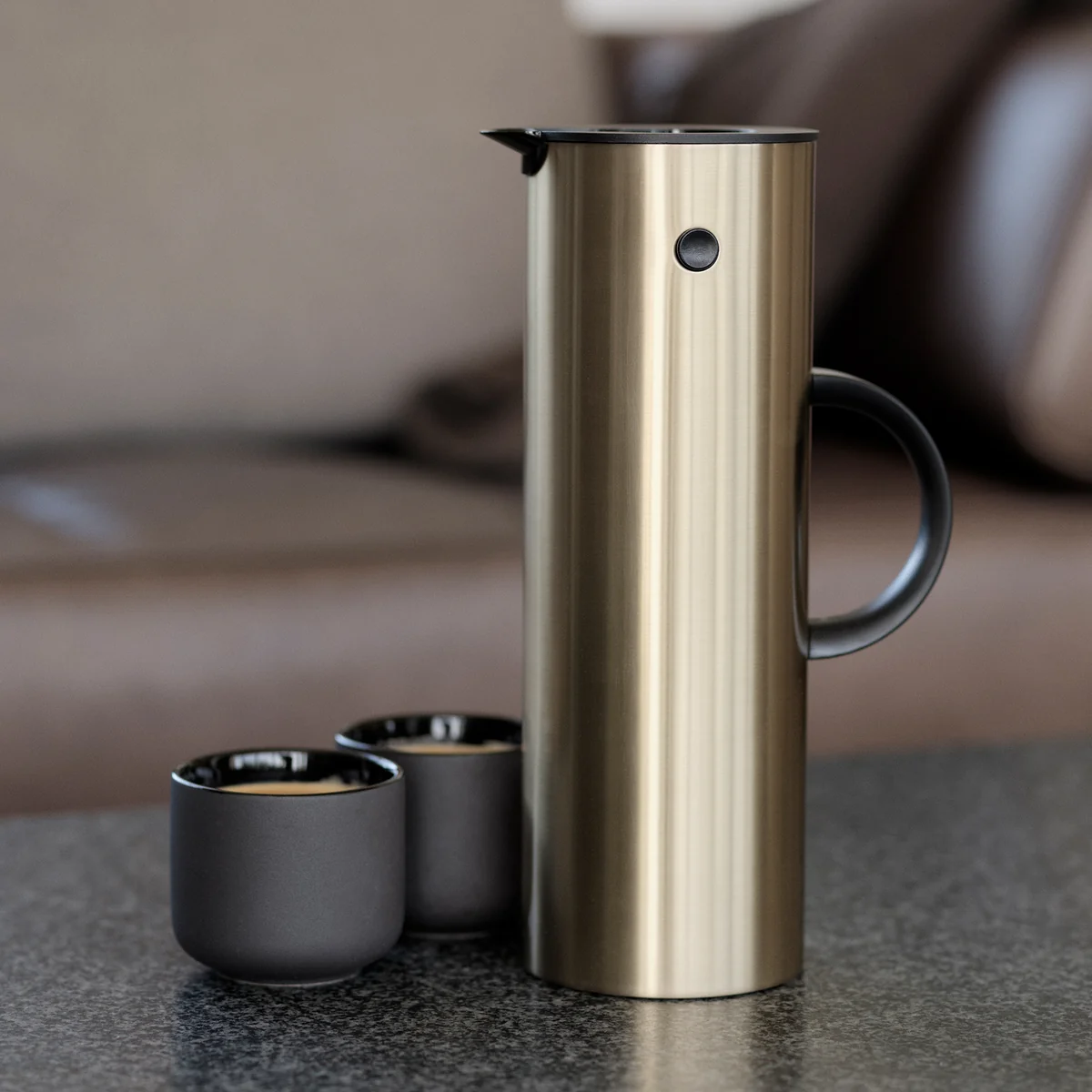 Stelton Le pichet isotherme EM 77 avec le fameux bouchon basculant d'Erik Magnussen est un classique. En raison de son design beau et compact, de sa qualité de fabrication exceptionnelle et, surtout, parce qu'il possède le bouchon basculant unique, ce pichet est un design intemporel et recherché pour la cuisine.