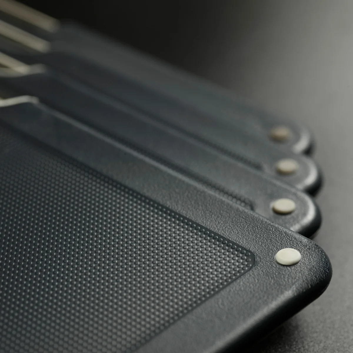 Chaque planche à code couleur est dotée d'une surface de coupe structurée et facile à découper des deux côtés, est fabriquée en plastique sans BPA et possède des pieds antidérapants. Après utilisation, les planches peuvent être nettoyées au lave-vaisselle. Veuillez noter que les panneaux peuvent se rayer avec le temps en raison de la nature du matériau.