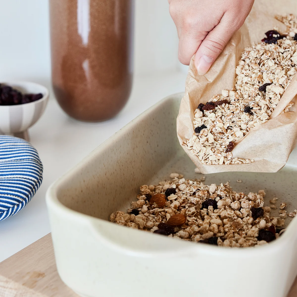 Les lignes épurées et la forme organique du moule à four Yuka reflètent la beauté naturelle du design scandinave. Les couleurs neutres s'intègrent harmonieusement dans différents styles de cuisine et font de ce moule à four un compagnon polyvalent dans la cuisine.