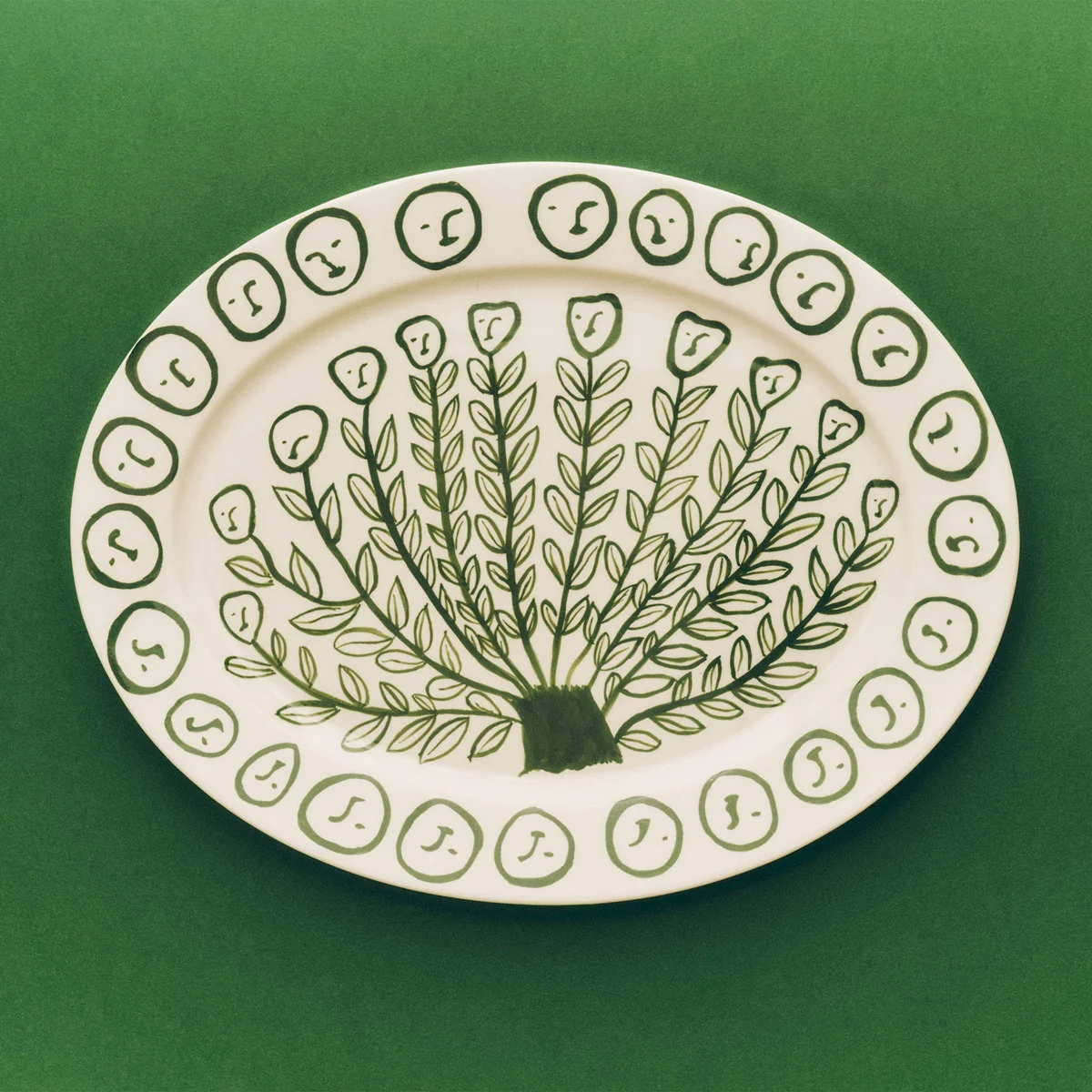 Le plat de service La Pittura de HAY a été développé en collaboration avec l'artiste américaine Emma Kohlmann. Cette collection de plats en céramique peints à la main apporte les designs ludiques et expressifs de Kohlmann directement dans la maison. Inspirée des céramiques historiques, la série combine l'art et l'utilisation pratique et transforme chaque repas en une expérience visuelle. Les plats de service sont décorés de couleurs vives et de motifs caractéristiques de Kohlmann, qui confèrent à la collection une touche artistique unique.