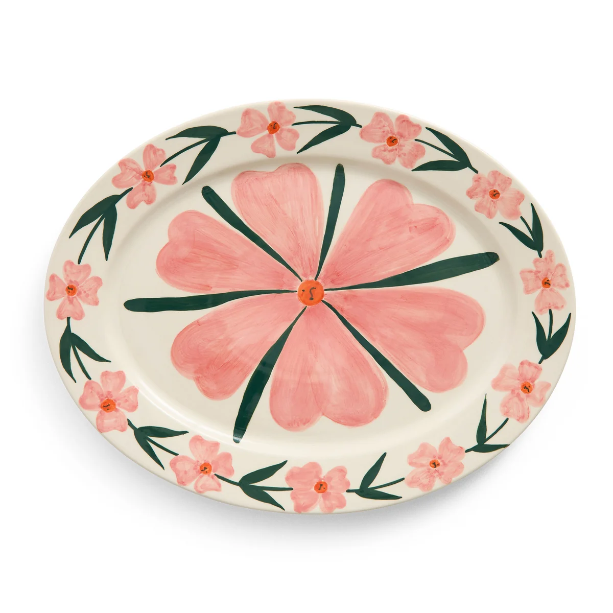 Le plat de service La Pittura de HAY a été développé en collaboration avec l'artiste américaine Emma Kohlmann. Cette collection de plats en céramique peints à la main apporte les designs ludiques et expressifs de Kohlmann directement dans la maison. Inspirée des céramiques historiques, la série combine l'art et l'utilisation pratique et transforme chaque repas en une expérience visuelle. Les plats de service sont décorés de couleurs vives et de motifs caractéristiques de Kohlmann, qui confèrent à la collection une touche artistique unique.