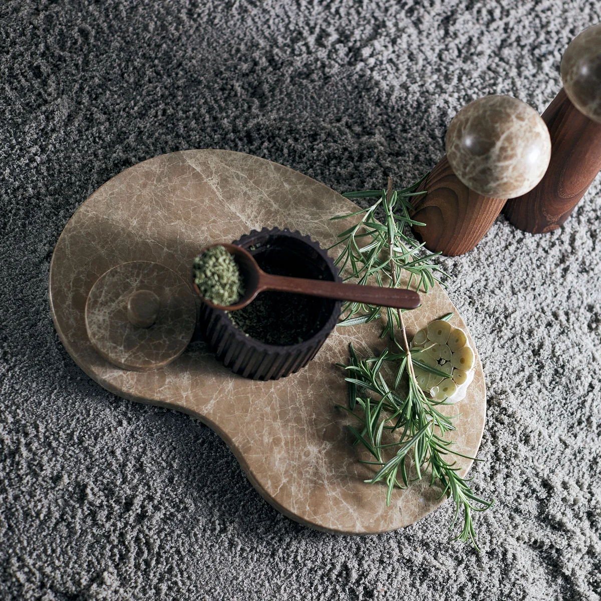 La planche à tapas Suji, magnifiquement incurvée, a été conçue avec l'amour des formes organiques. Les veines uniques du marbre font de chaque planche une pièce unique et reflètent la beauté de la nature dans une structure mosaïque fascinante. Avec ses courbes douces, la planche à tapas Suji apporte une touche intemporelle et artistique à la table. Elle n'est pas seulement fonctionnelle, mais aussi un élément décoratif qui rend le service des plats particulièrement élégant. Le contraste entre la forme raffinée et le marbrage naturel confère à la planche un rayonnement tout à fait particulier.