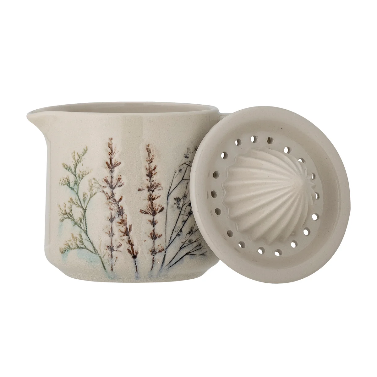 L'extracteur de jus de citron de Bloomingville est un bel extracteur de jus en grès aux couleurs naturelles, avec un délicat motif floral sur l'émail. L'extracteur de jus est fabriqué à la main et chaque pièce est donc unique. Passe au lave-vaisselle.