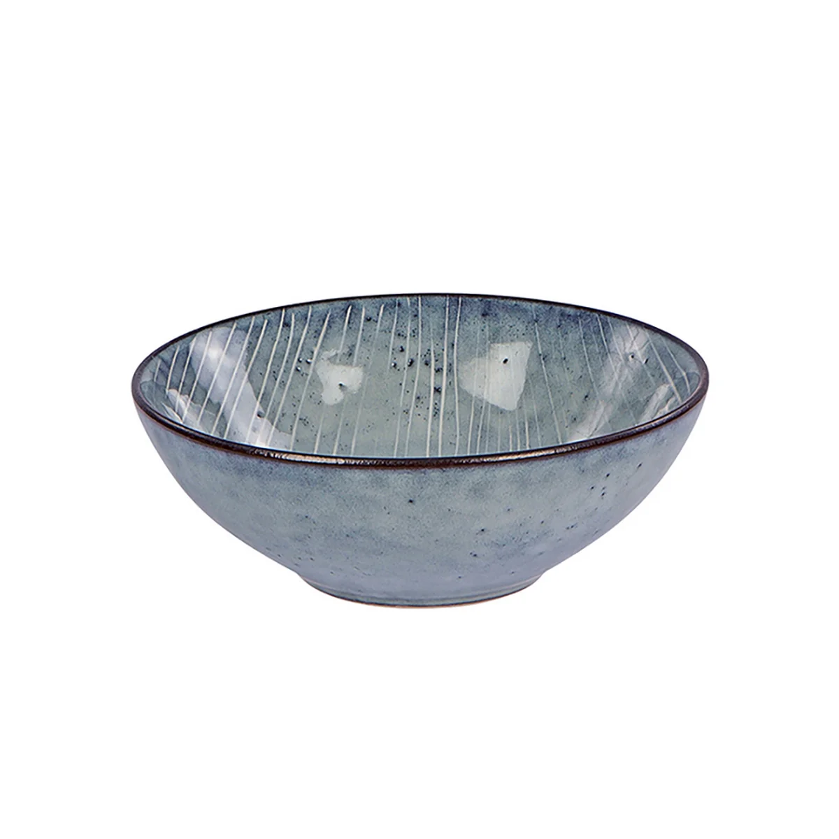 Le bol Nordic Sea fait partie de la série de vaisselle Nordic, le cœur de la Broste Copenhagen . Depuis son introduction en 2009, des plats ont été trouvés dans de nombreux restaurants et cuisines du monde entier. Le dégradé de couleurs doux est créé par un processus de gravure spécial et représente la puissance d'origine de l'océan. Chaque pièce est unique car la glaçure réagit dynamiquement dans le four et peut conduire à différentes textures et couleurs.